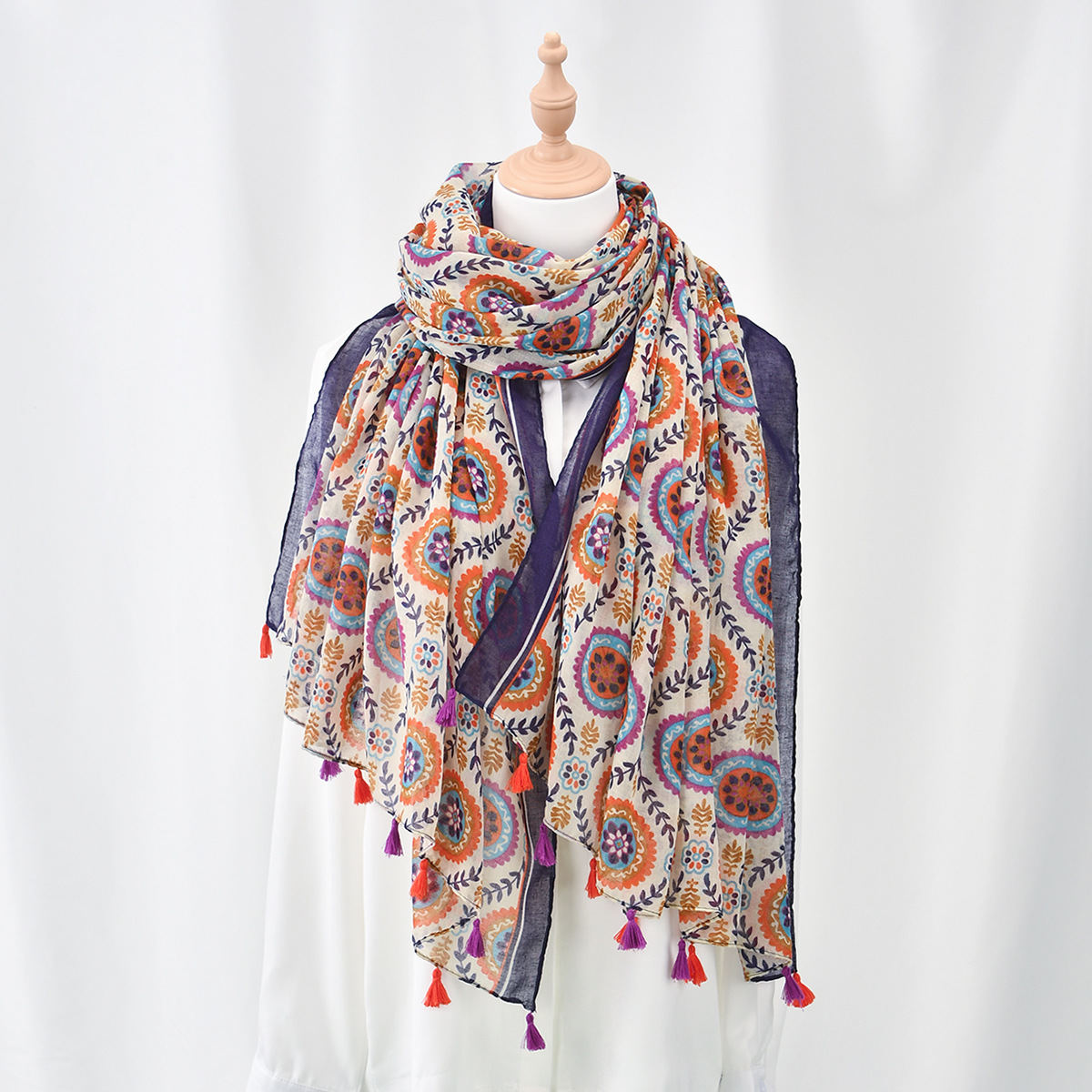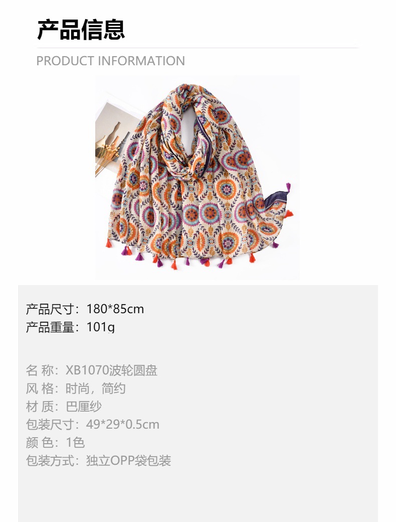 국경을 넘나드는 새로운 이국적인 민족 스타일의 휠 디스크 롱 스카프, 문학적이고 신선한 발리 원사 스카프, 패셔너블한 복고풍 숄스토어 가기