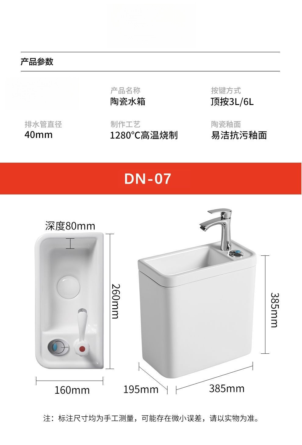• 세면대 물탱크 - 모델 07(앵글 밸브 호스 포함)