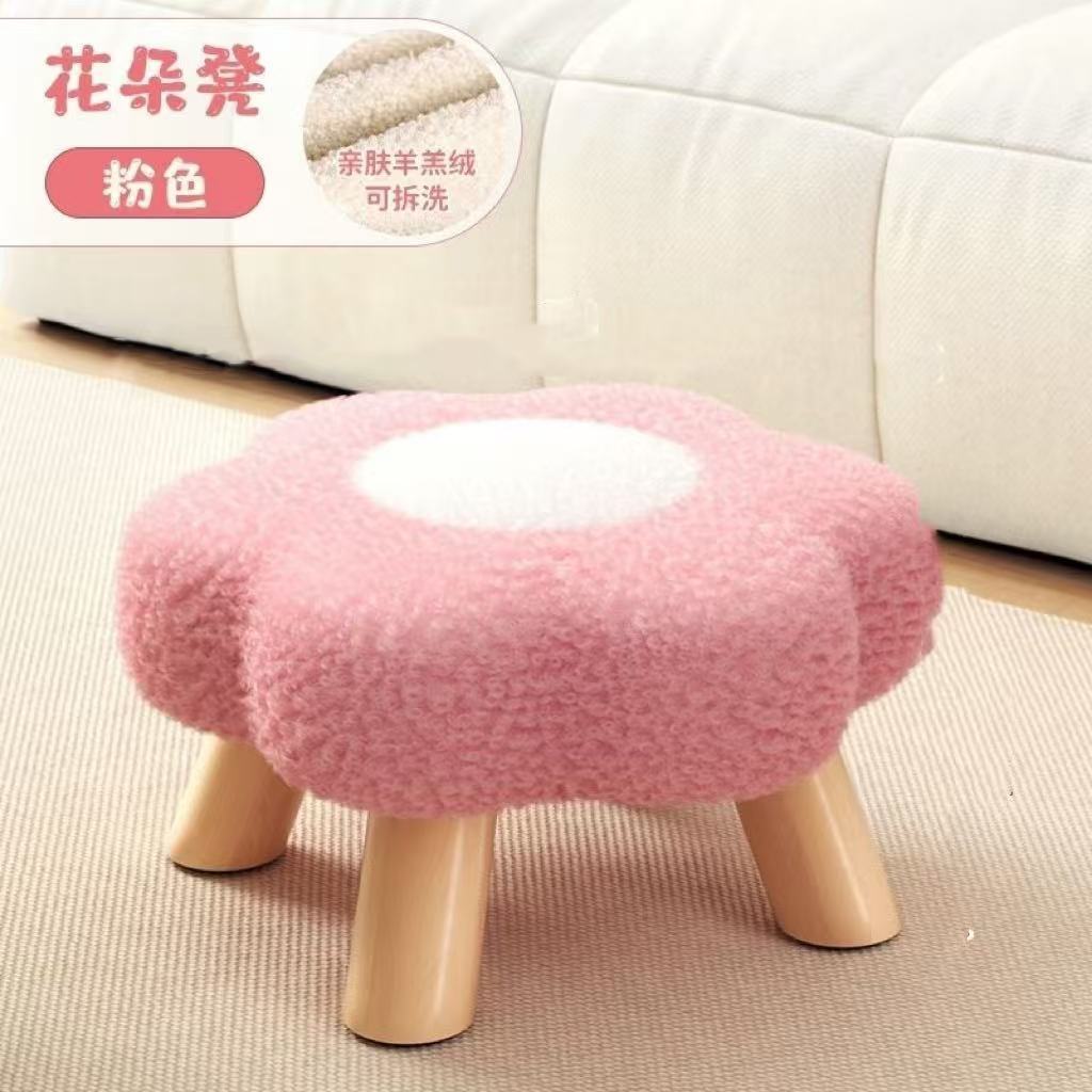 • 탈부착 및 세탁 가능한 스툴 커버가 있는 램스울 핑크색 낮은 스툴(높이 20)