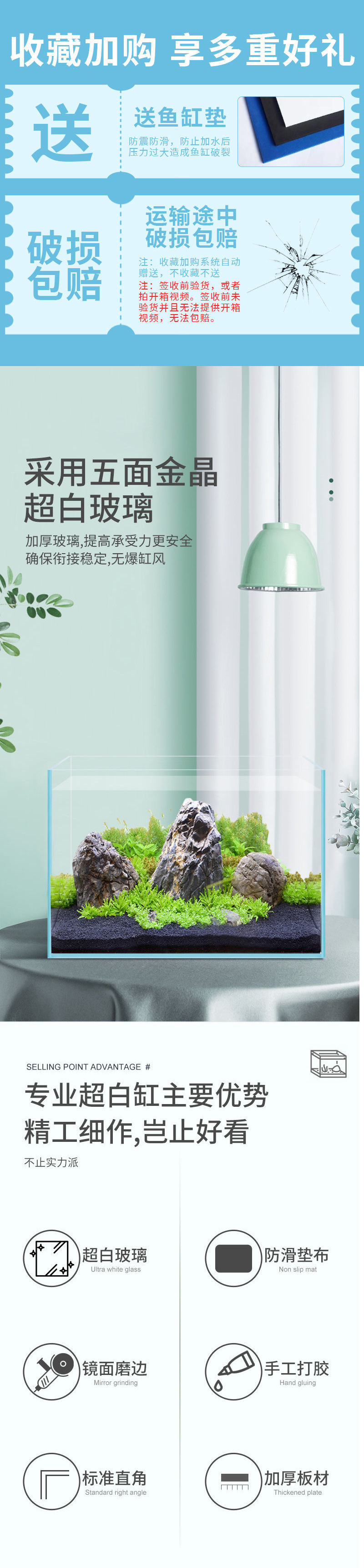 진징 울트라 화이트 유리 물고기 탱크 가정용 거실 수족관 거북이 탱크 생태 물 잔디 탱크 원래 탱크 사각형 탱크 도매스토어 가기