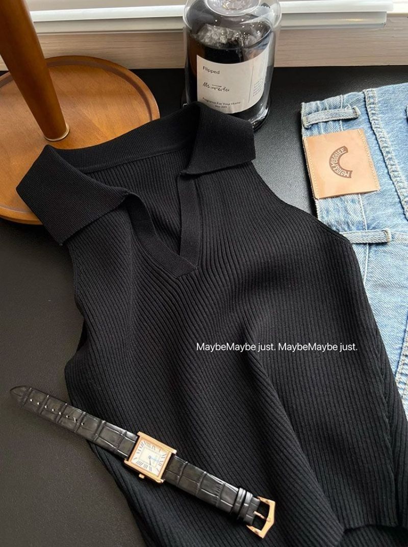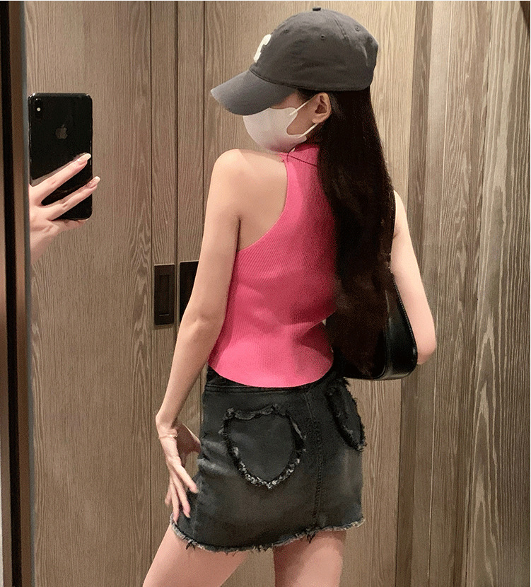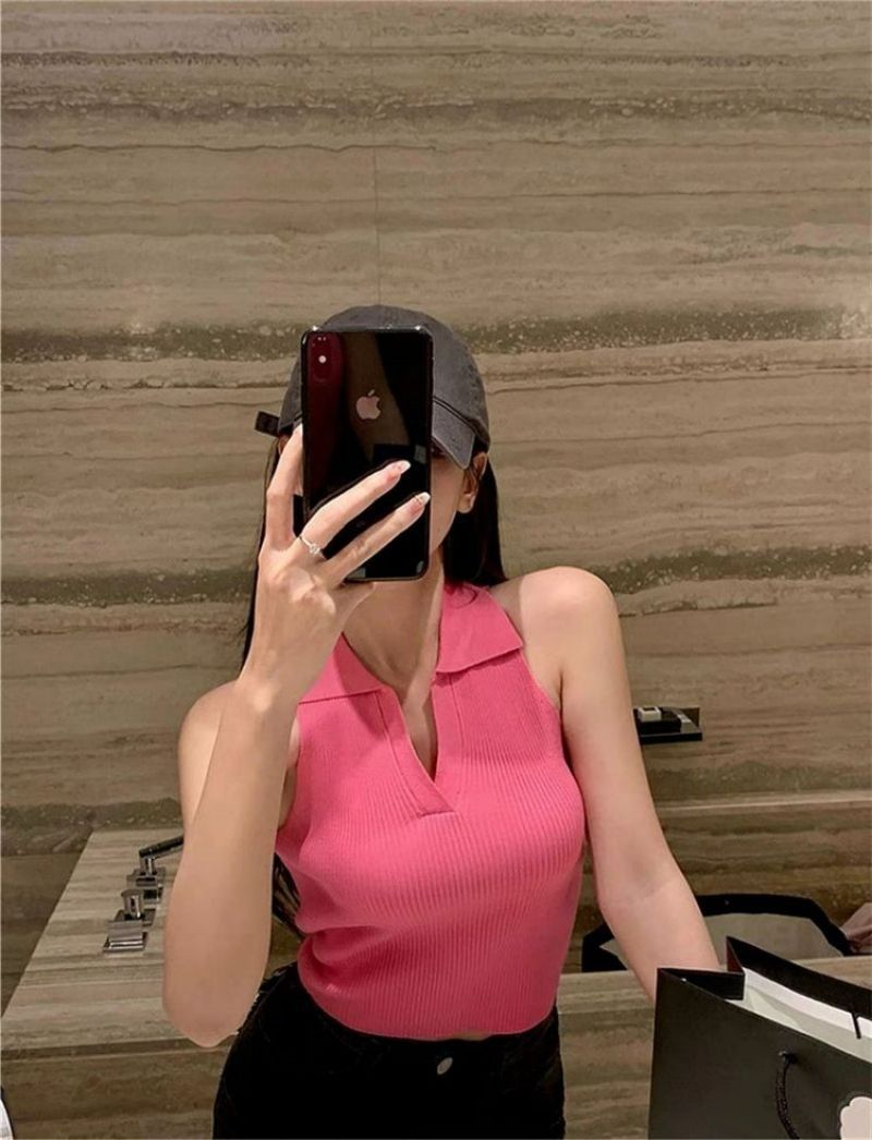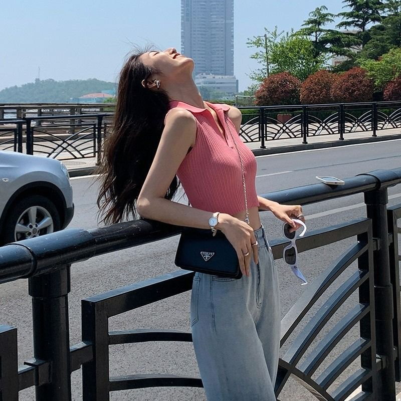 프랑스 스타일 폴로 넥 니트 카미 솔 여성용 여름 외부 착용 민소매 베이스 달콤한 스파이스 소녀 짧은 내부 교수형 목 탑스토어 가기