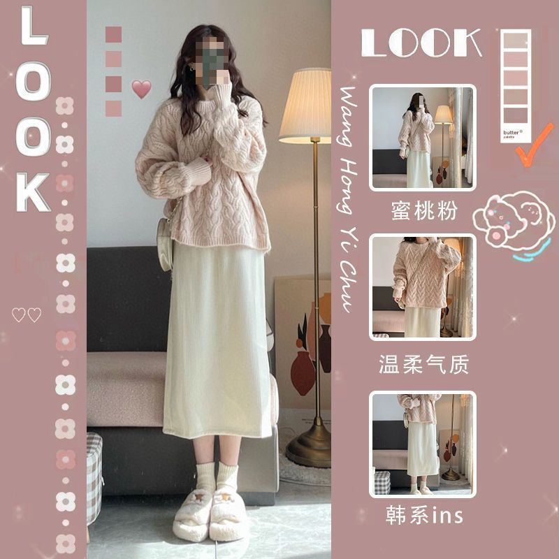 가을 2025 년 새로운 한국 스타일 부드러운 스타일 나이를 줄이는 니트 스웨터 스웨터 여성 작은 높이 치마 세트 여성스토어 가기