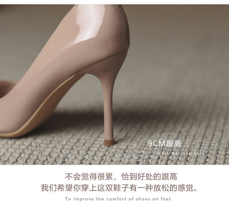 하이힐 여성용 스틸레토 힐 섹시 얕은 입 기질 싱글 레이어 신발 여성의 뾰족한 발가락 간단한 누드 컬러 샤넬 스타일 2024스토어 가기