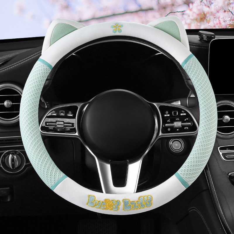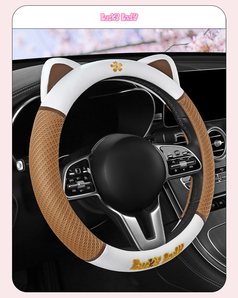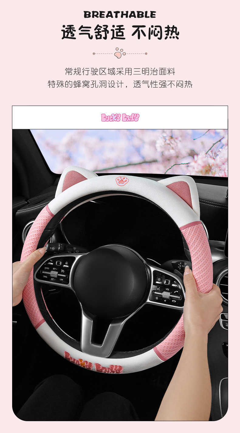 새로운 귀여운 스티어링 휠 커버 통기성 땀 흡수성 신 에너지 전기 자동차 4 시즌 핸들 커버 D 형 O 형 통기성 가죽 핸들 커버