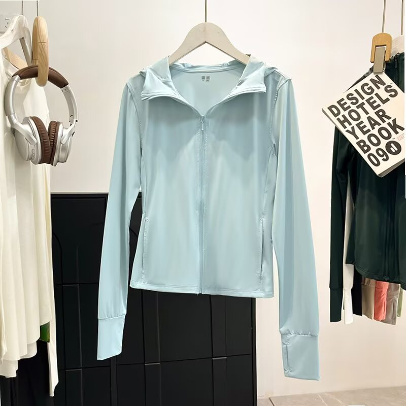 여름 추천 여성의 높은 탄성 자외선 차단 지퍼 후드 카디건 선 스크린 쿨 느낌 슬림 핏 m477049