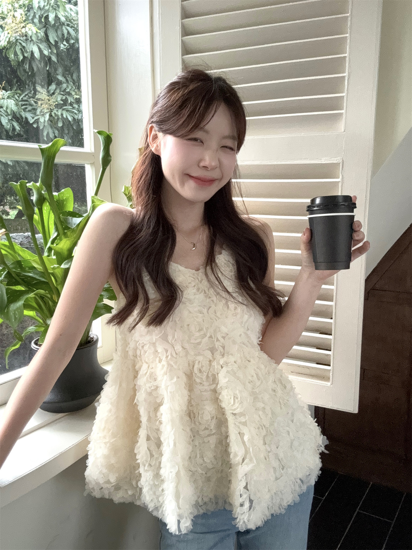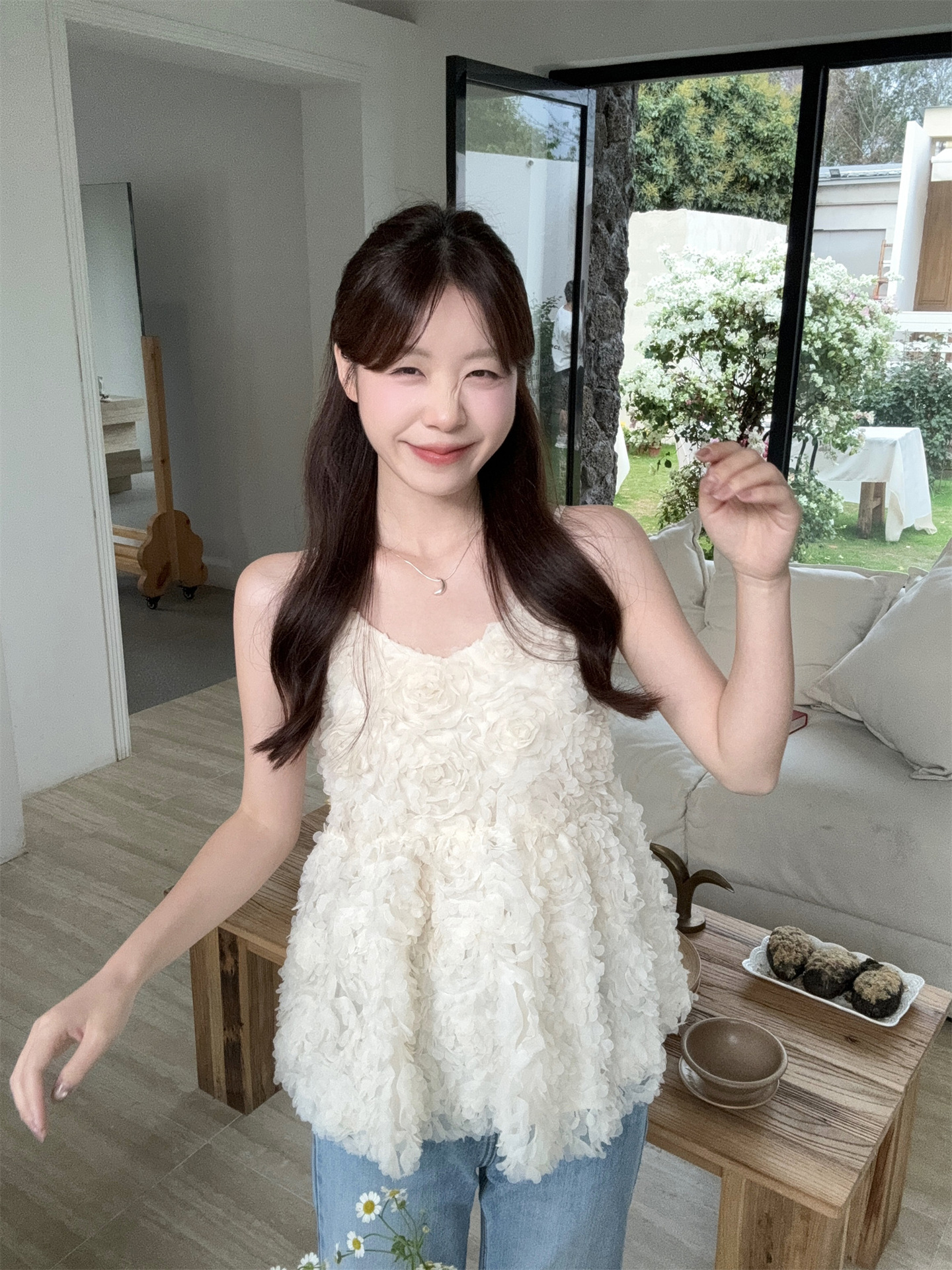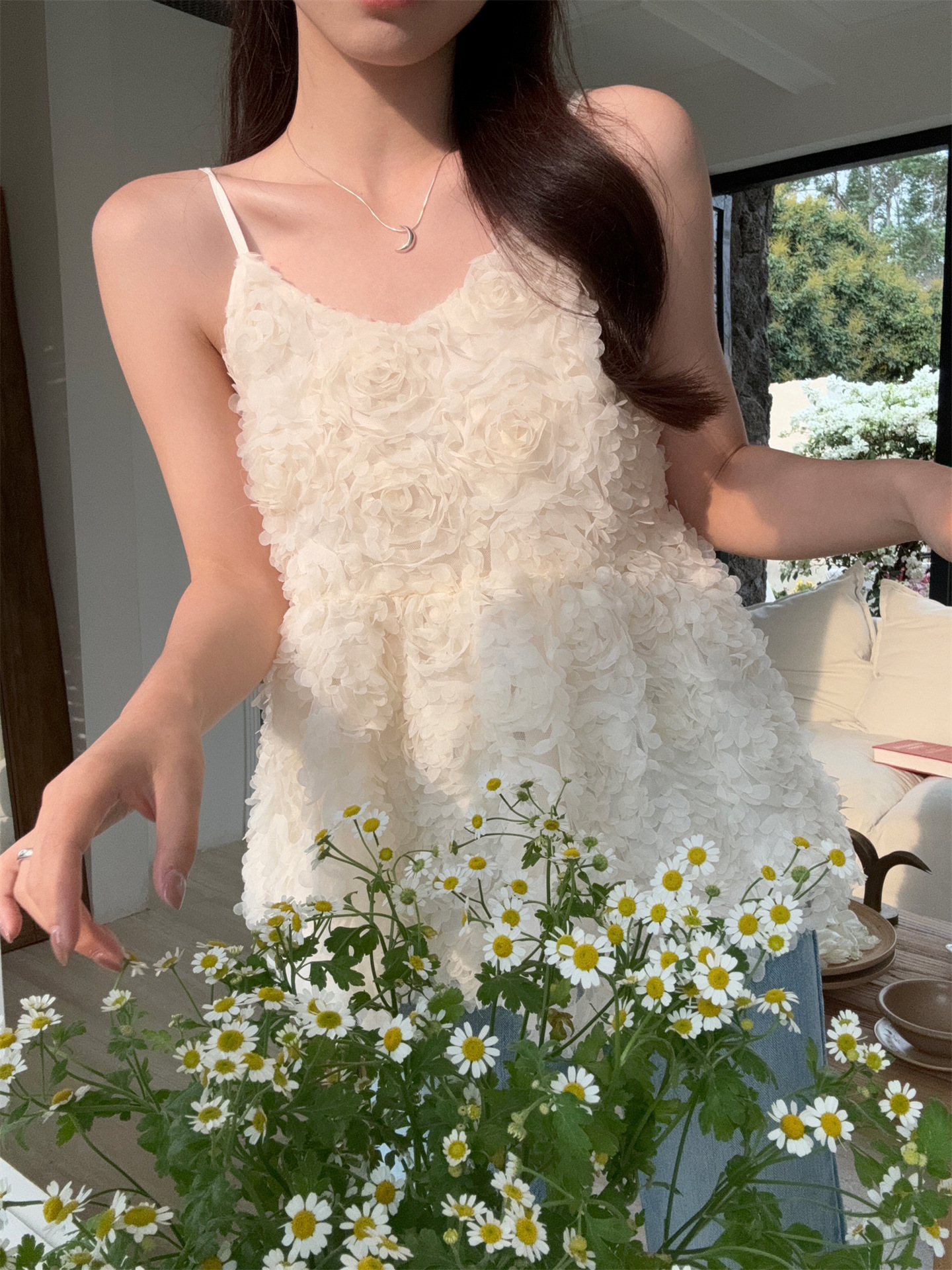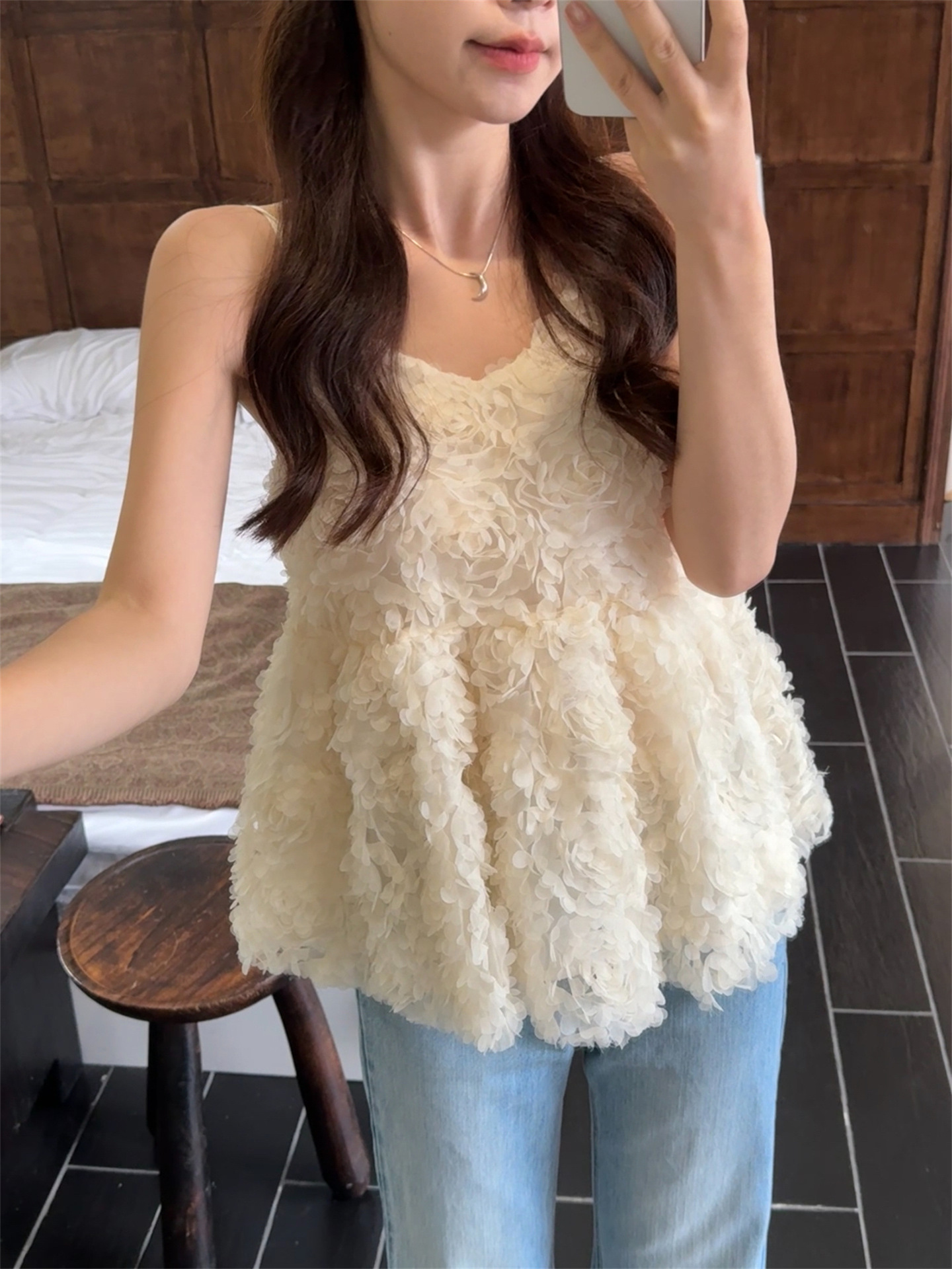 리얼 샷 ~ 프랑스 소수 디자인 감각 입체 꽃 탑 여성의 여름 민소매 달콤한 캐미솔 79180