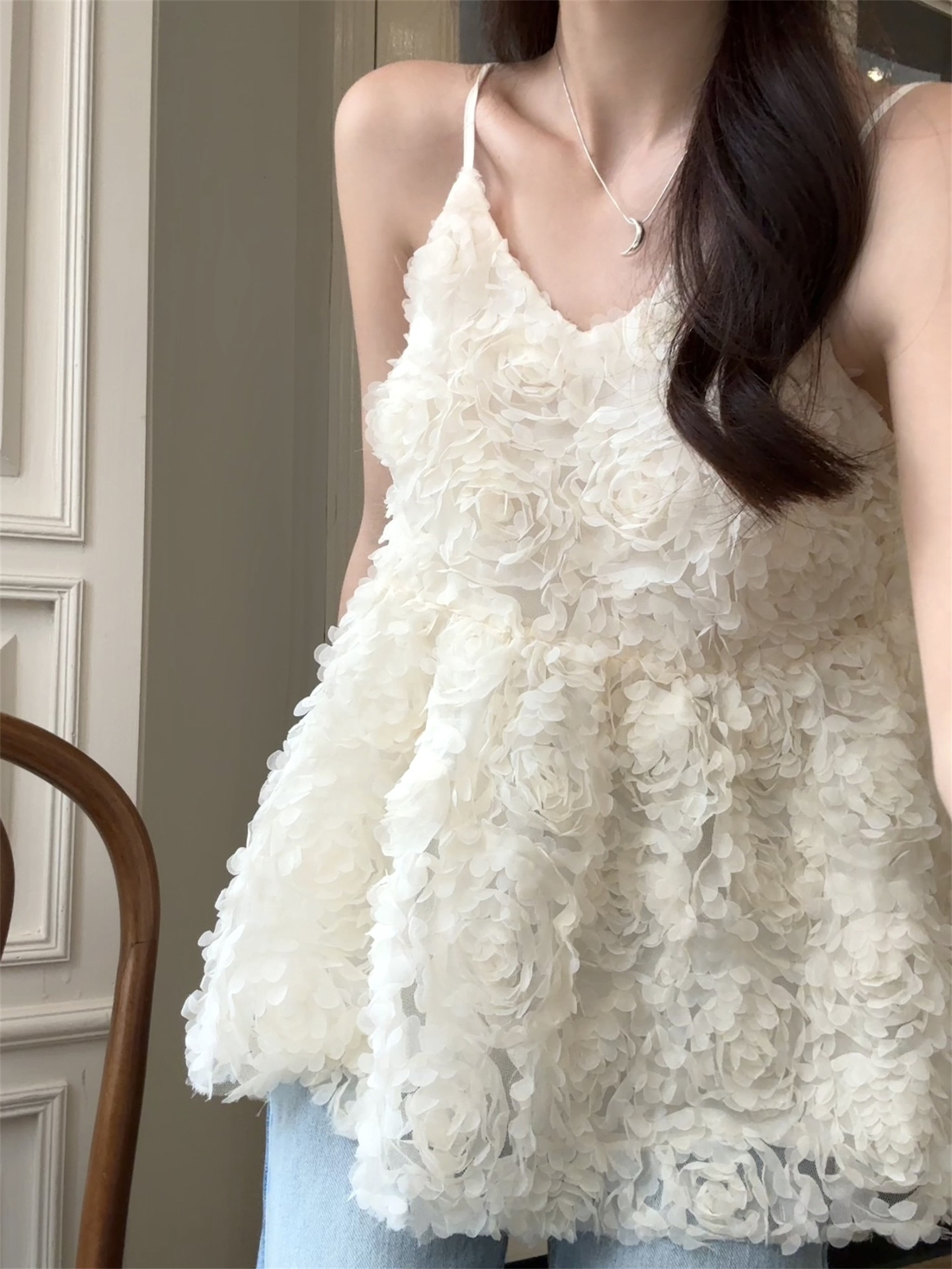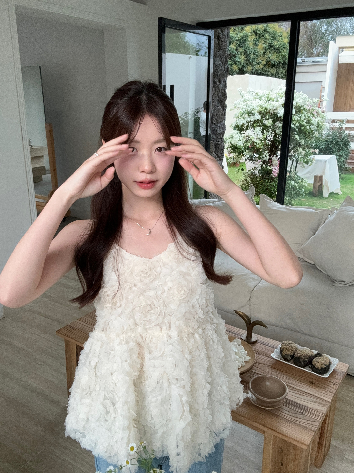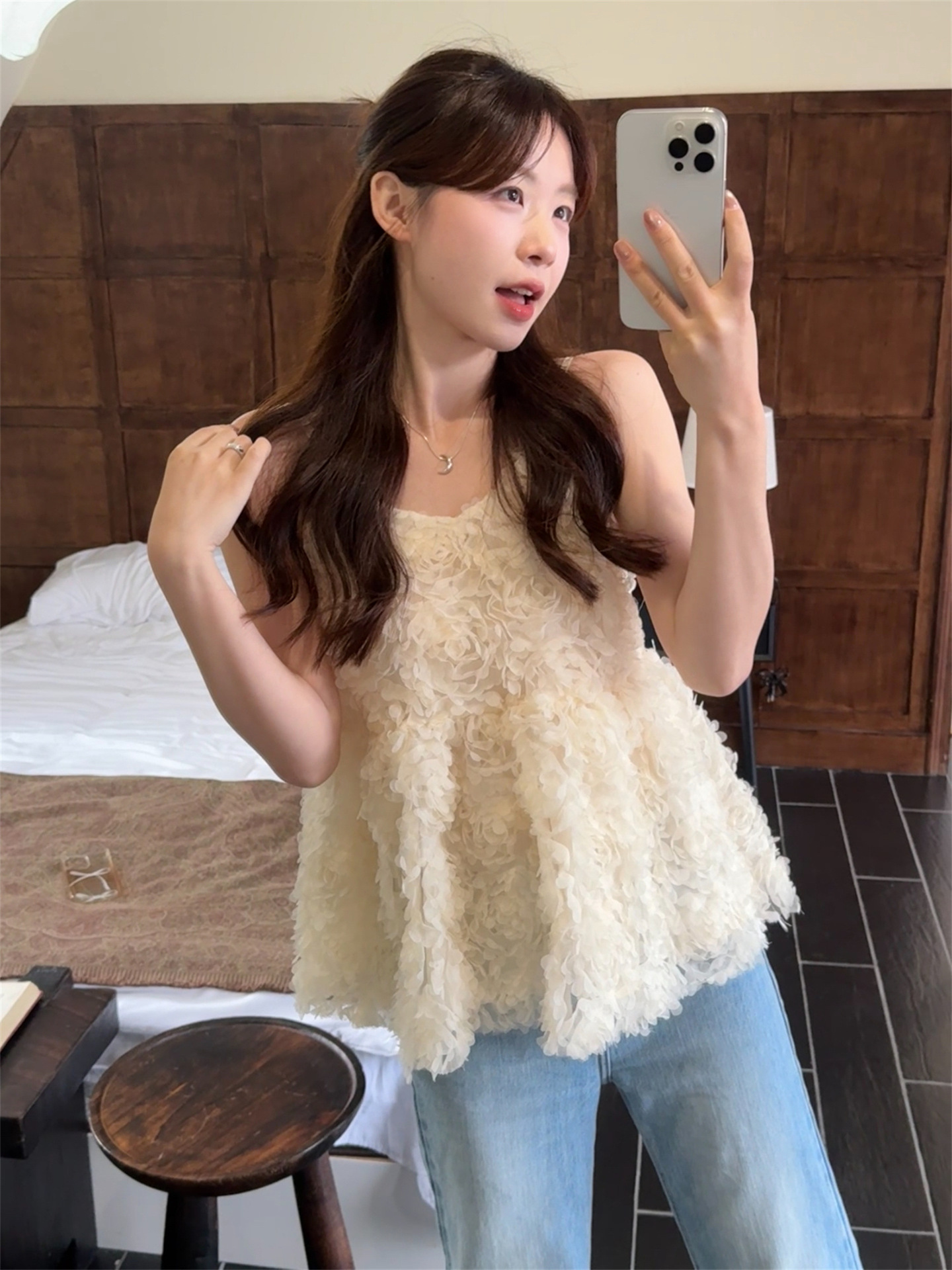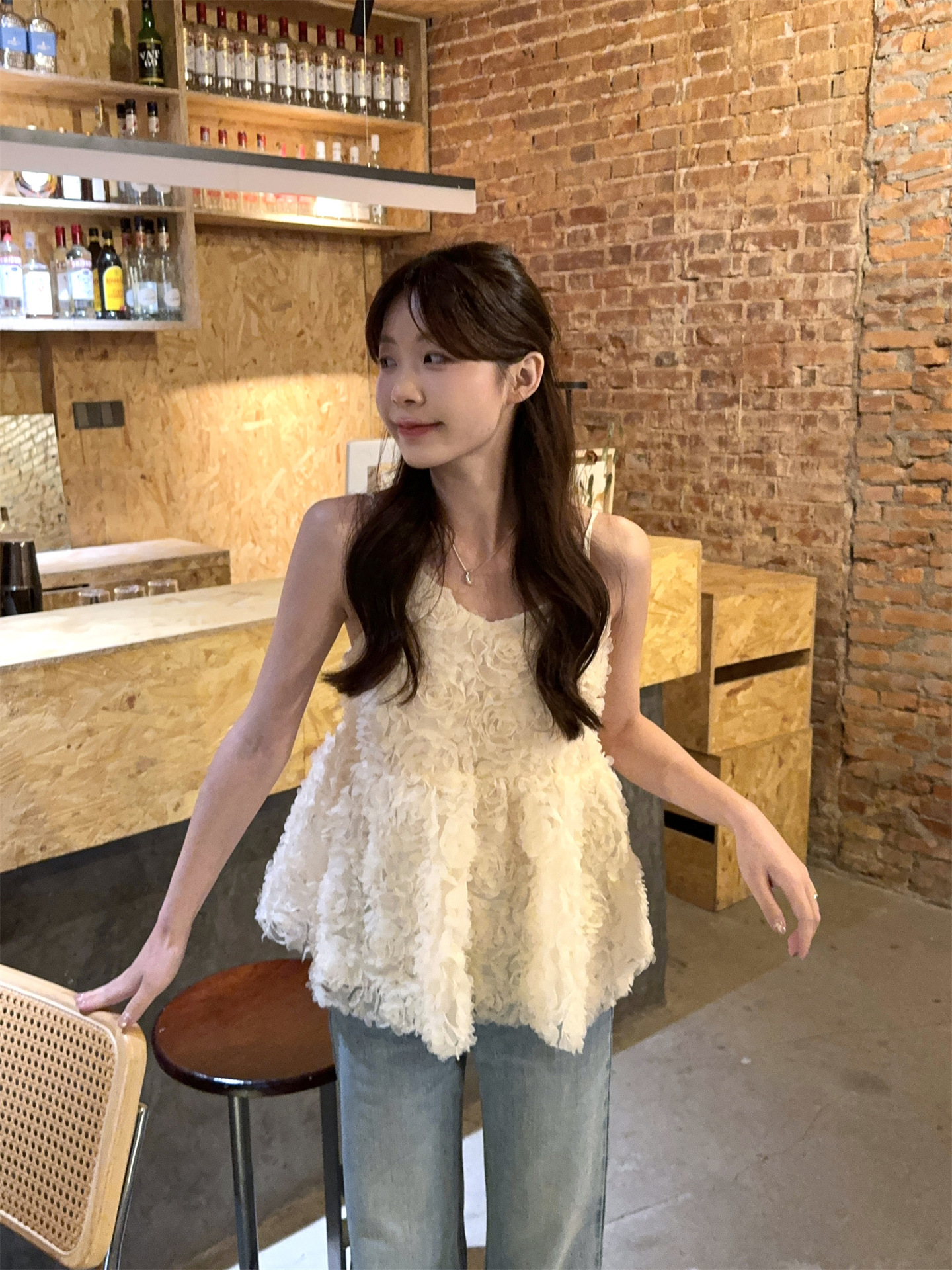 리얼 샷 ~ 프랑스 소수 디자인 감각 입체 꽃 탑 여성의 여름 민소매 달콤한 캐미솔 79180