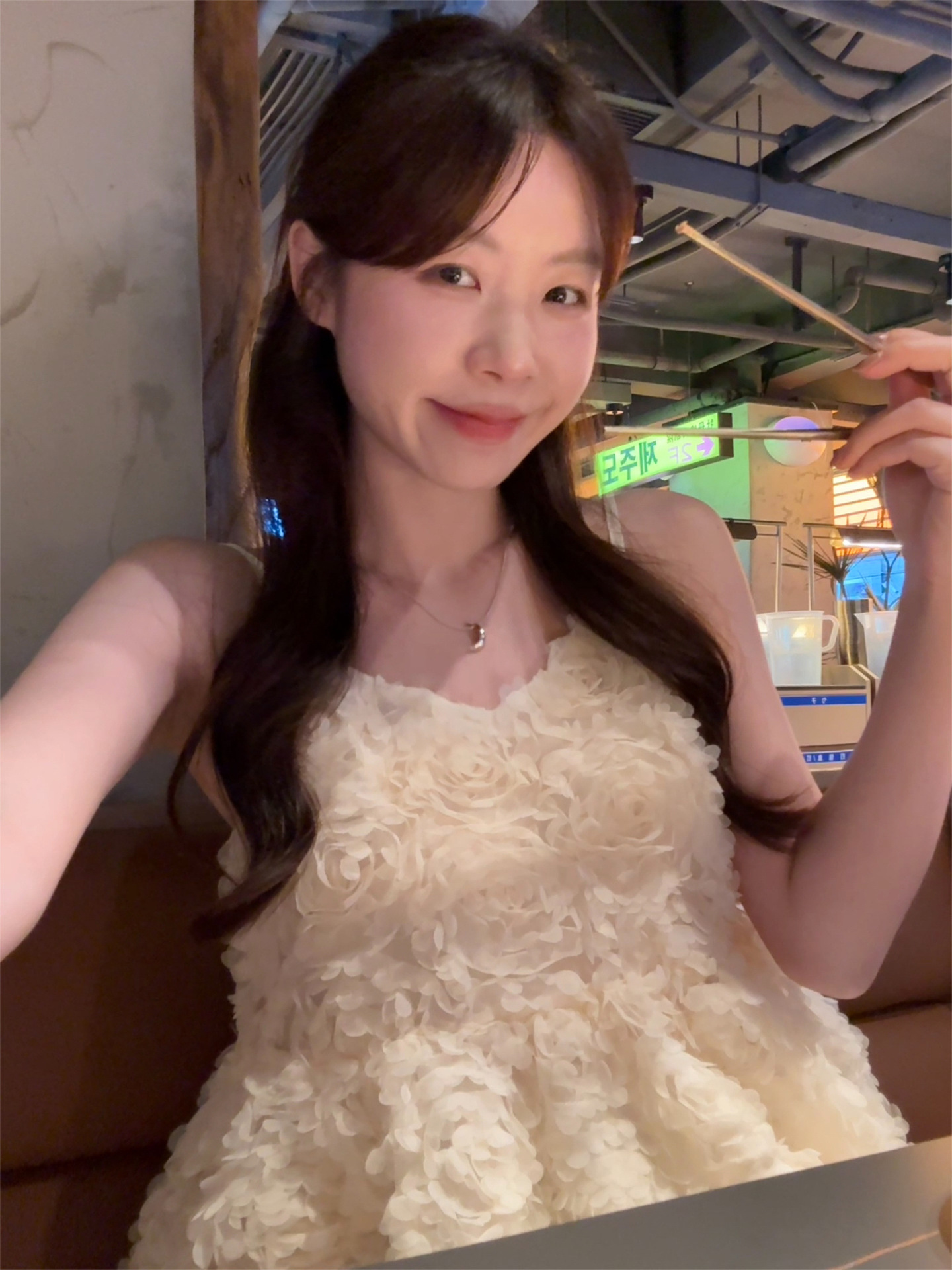 리얼 샷 ~ 프랑스 소수 디자인 감각 입체 꽃 탑 여성의 여름 민소매 달콤한 캐미솔 79180스토어 가기