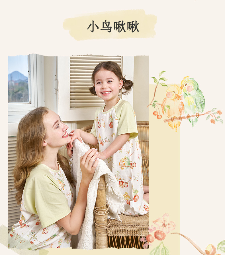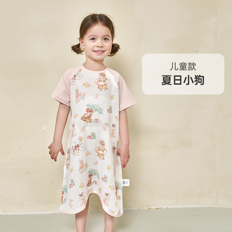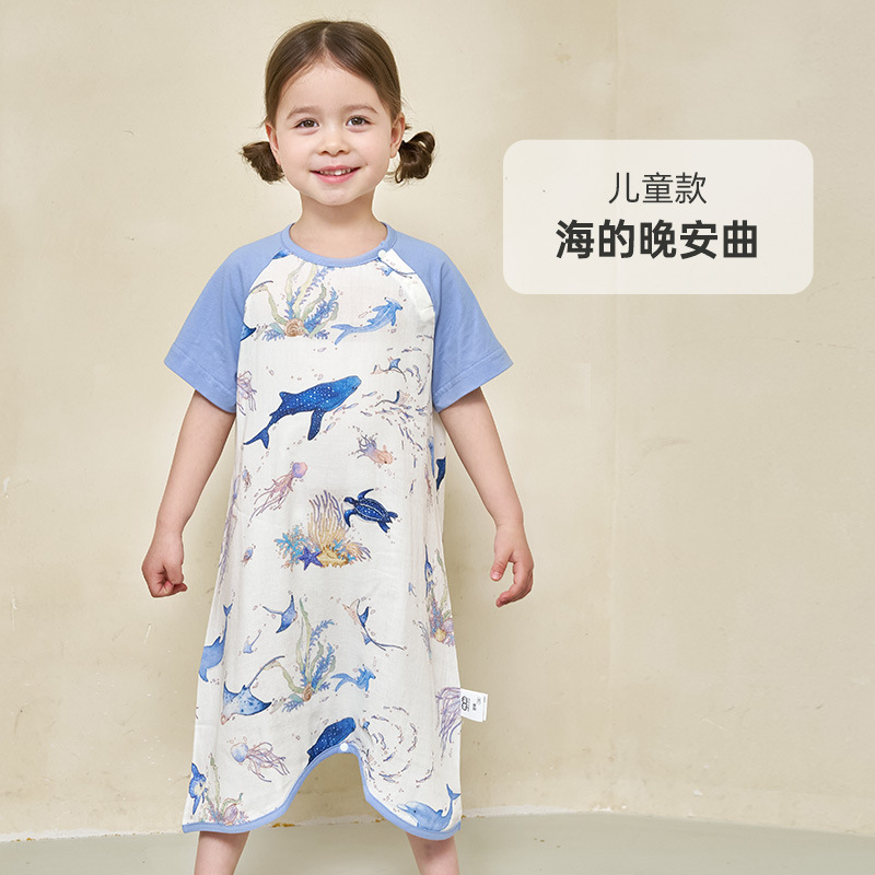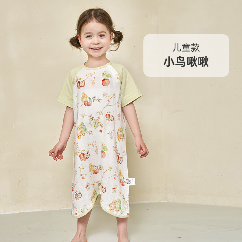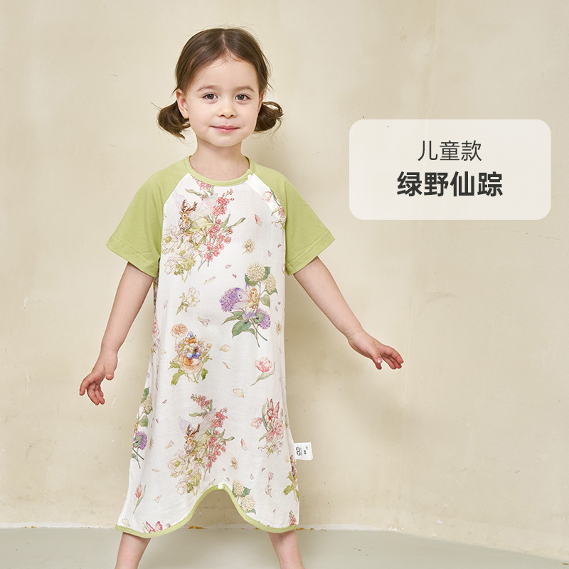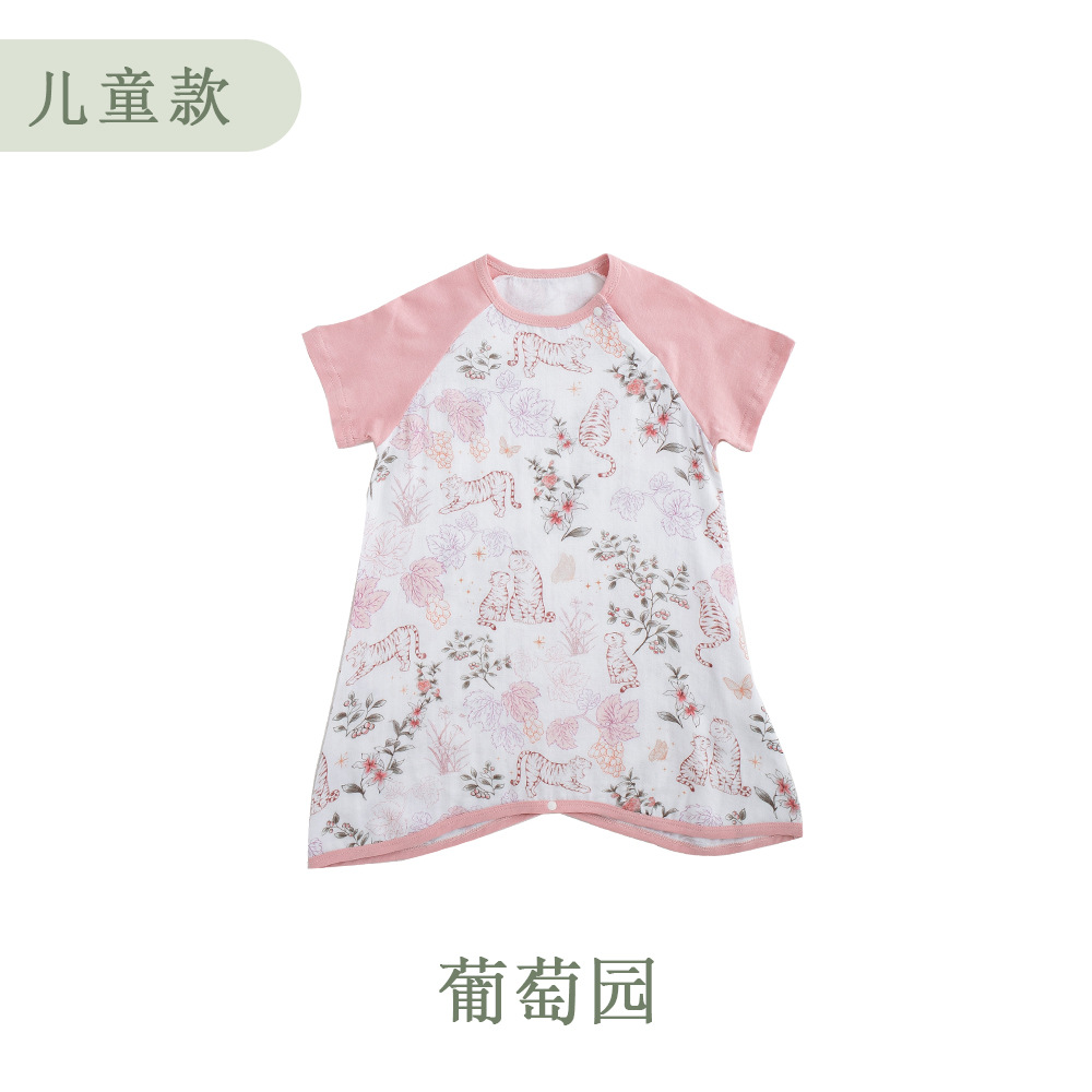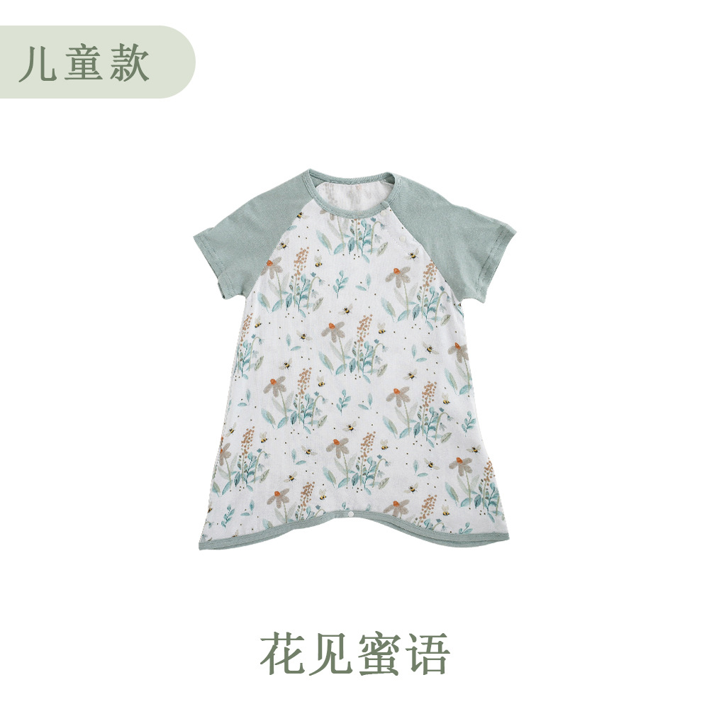 안단 봄여름 대나무면 거즈 아동용 침낭 여름용 얇은 부모-자녀 잠옷 원피스 부모-자녀 홈웨어 통기성