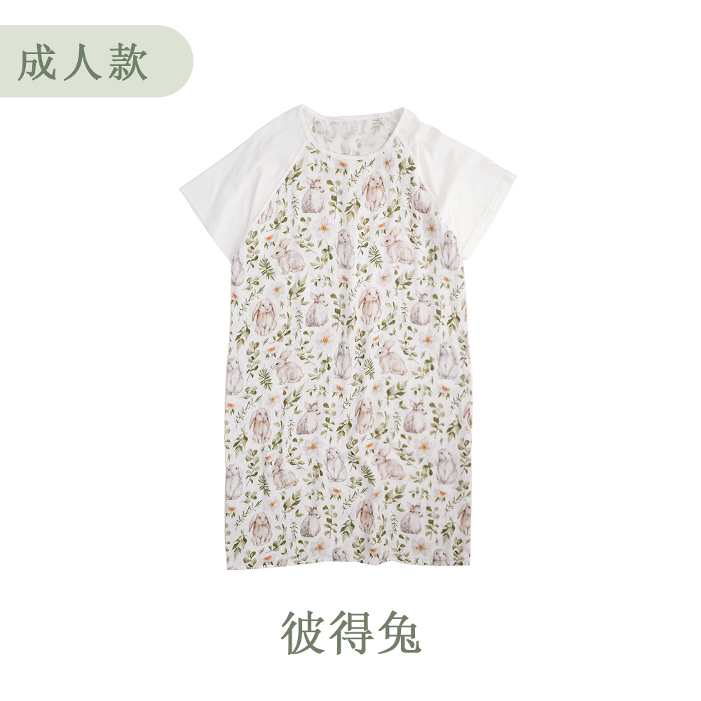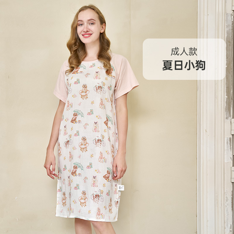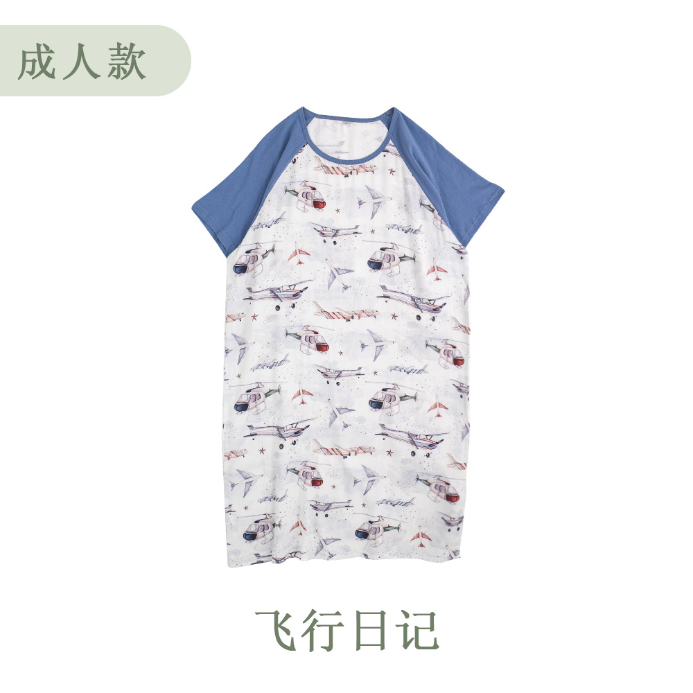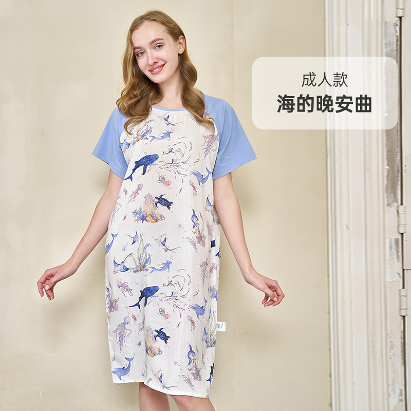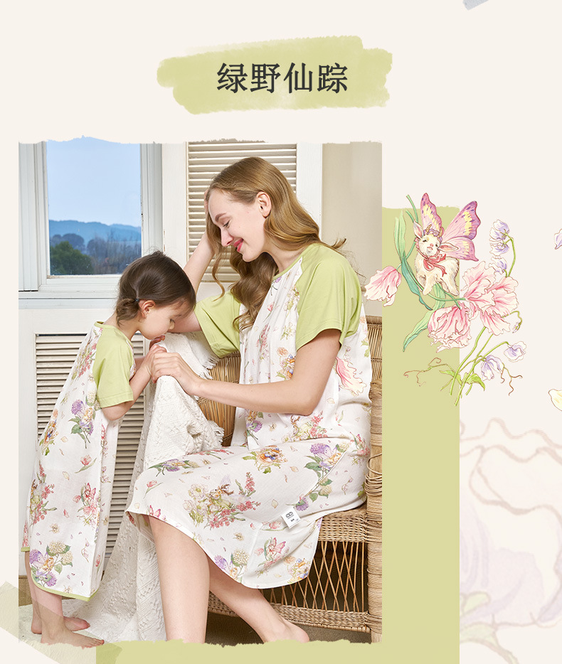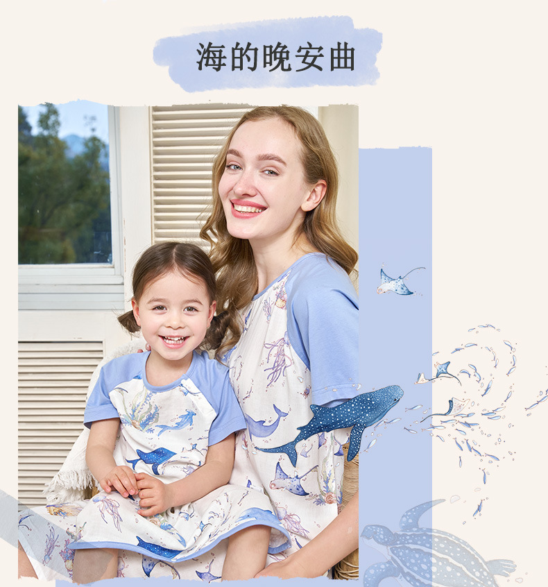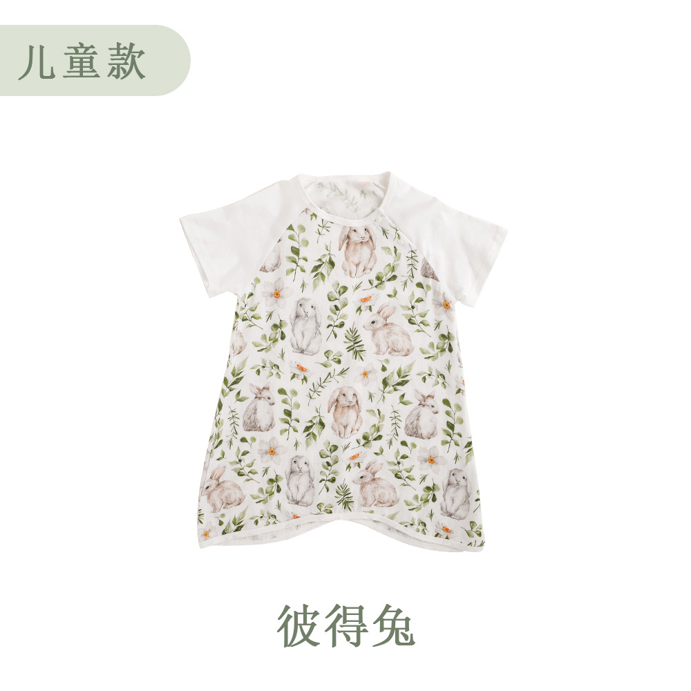 안단 봄여름 대나무면 거즈 아동용 침낭 여름용 얇은 부모-자녀 잠옷 원피스 부모-자녀 홈웨어 통기성