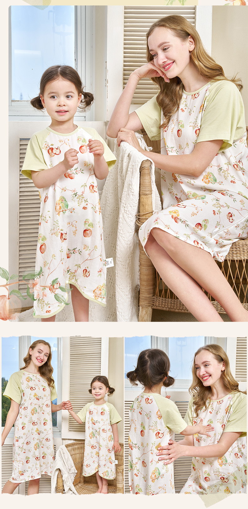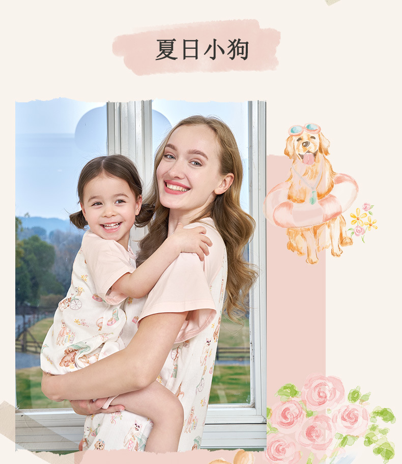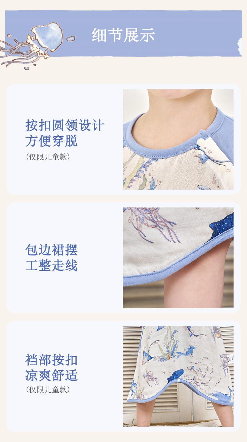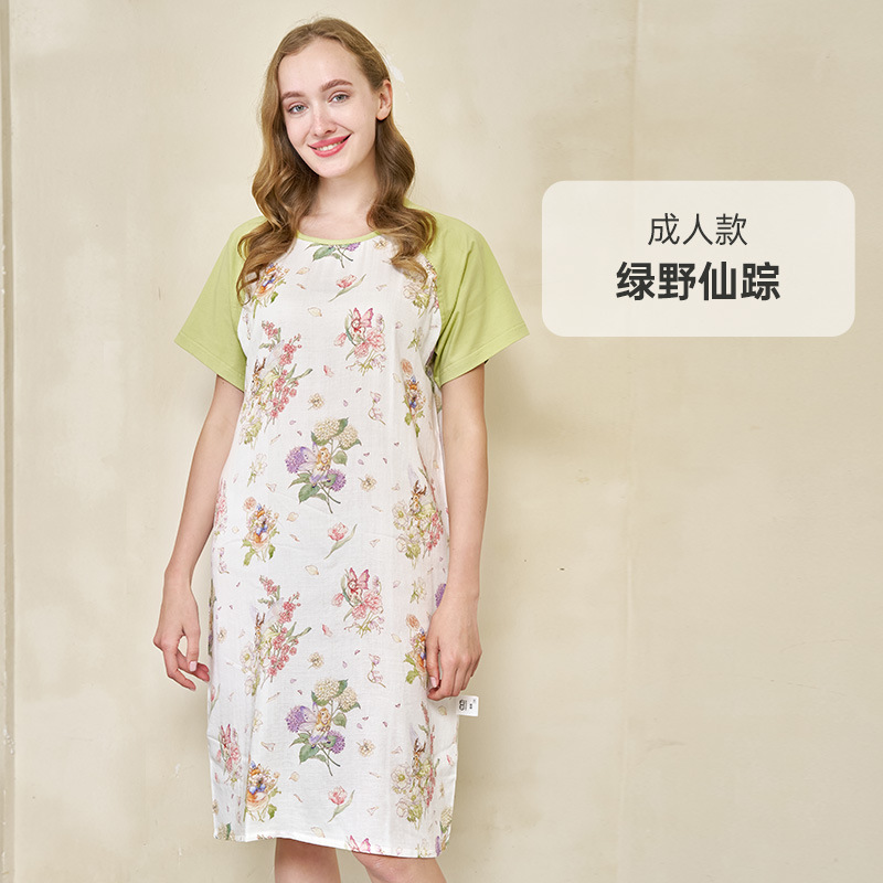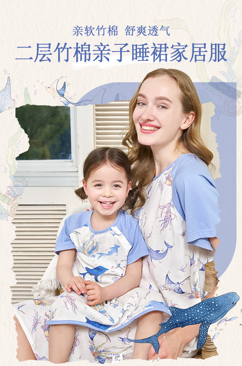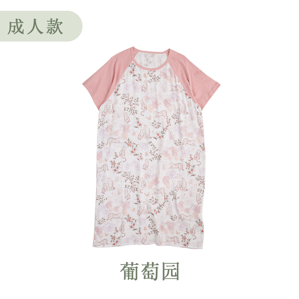 안단 봄여름 대나무면 거즈 아동용 침낭 여름용 얇은 부모-자녀 잠옷 원피스 부모-자녀 홈웨어 통기성
