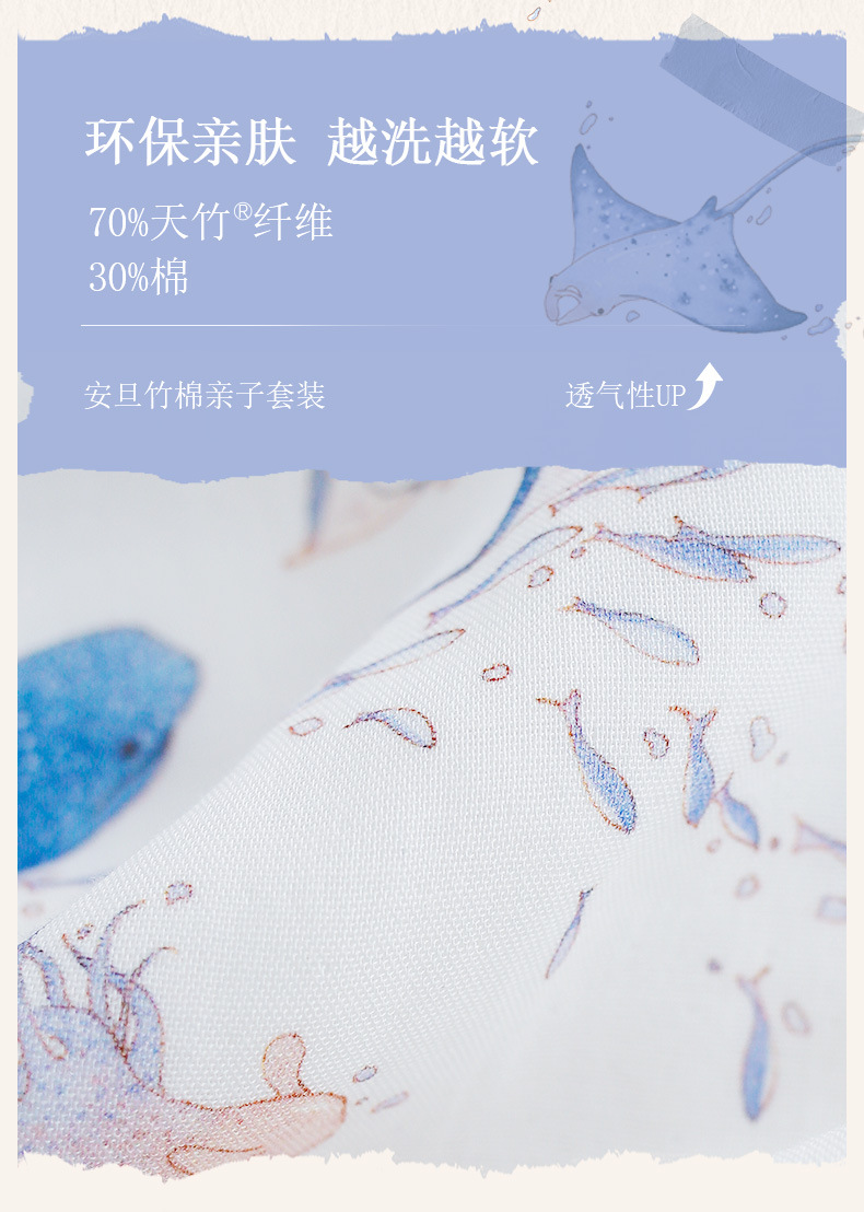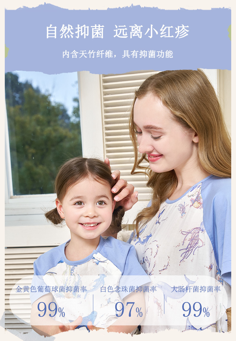 안단 봄여름 대나무면 거즈 아동용 침낭 여름용 얇은 부모-자녀 잠옷 원피스 부모-자녀 홈웨어 통기성스토어 가기