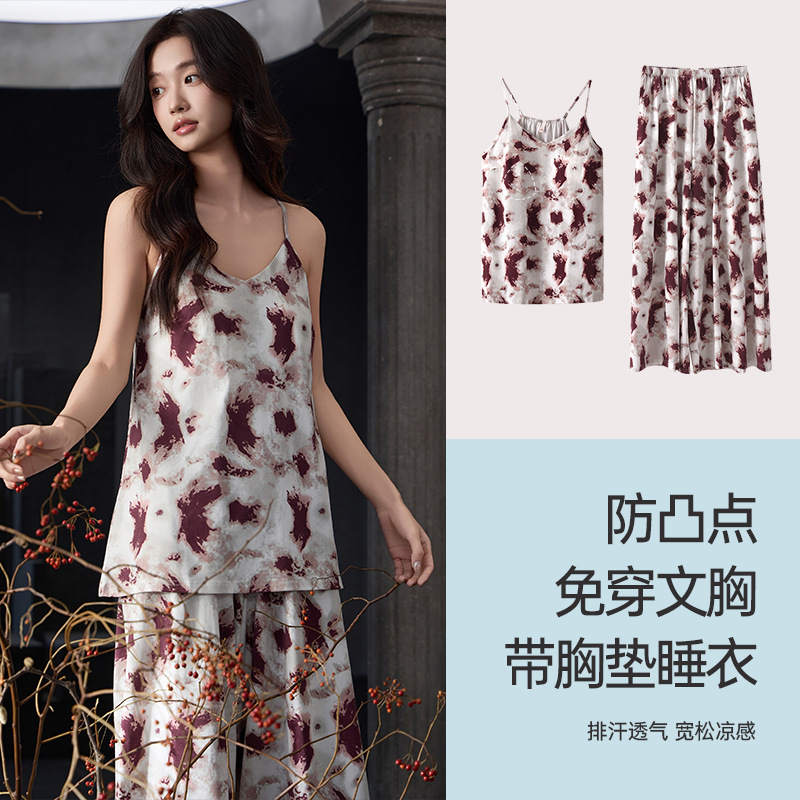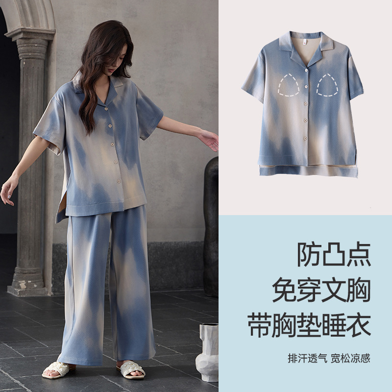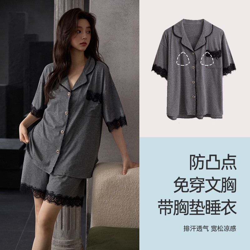 가슴 패드가 달린 RC 모달 파자마 여성용 여름 반팔 바지 얇은 간단한 캐주얼 느슨한 홈 의류 세트스토어 가기