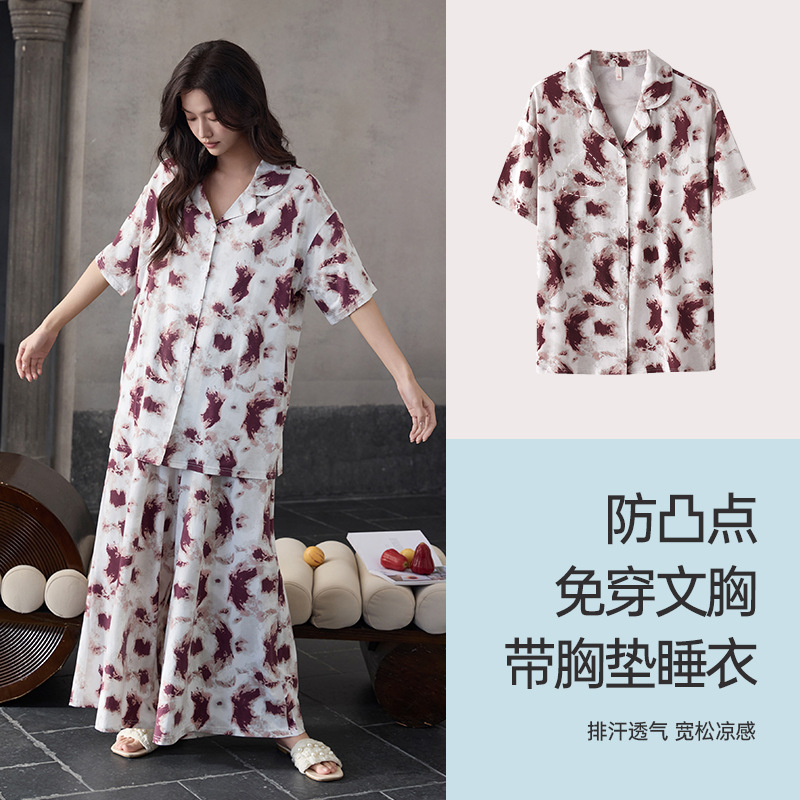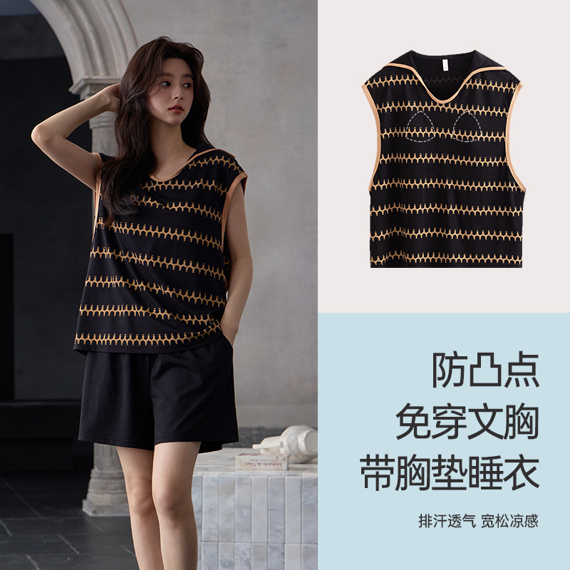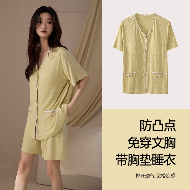 가슴 패드가 달린 RC 모달 파자마 여성용 여름 반팔 바지 얇은 간단한 캐주얼 느슨한 홈 의류 세트