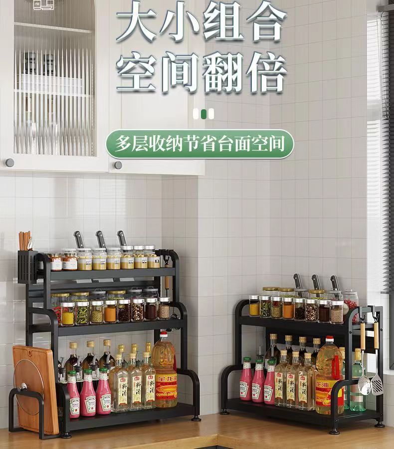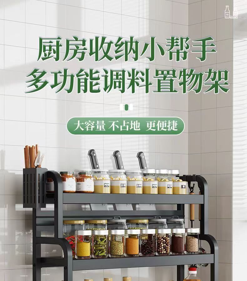 추가 두꺼운 굵은 탄소 강철 재료 다기능 양념 랙 레이어드 스토리지 조미료 다층 주방 보관 랙 클리어런스스토어 가기