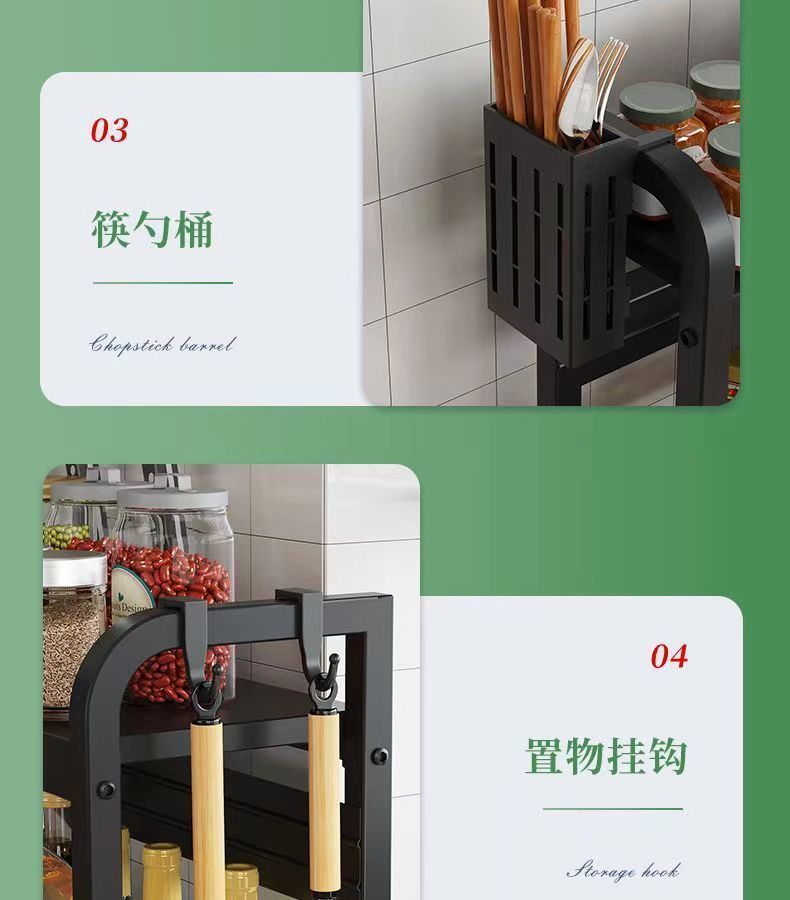 추가 두꺼운 굵은 탄소 강철 재료 다기능 양념 랙 레이어드 스토리지 조미료 다층 주방 보관 랙 클리어런스