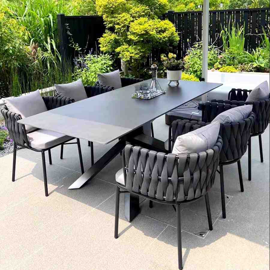 야외 안뜰 테이블과 의자, 빌라 정원, 고급 야외 레저 발코니 등나무 의자, 슬레이트 식탁, 테라스 등나무 가구스토어 가기