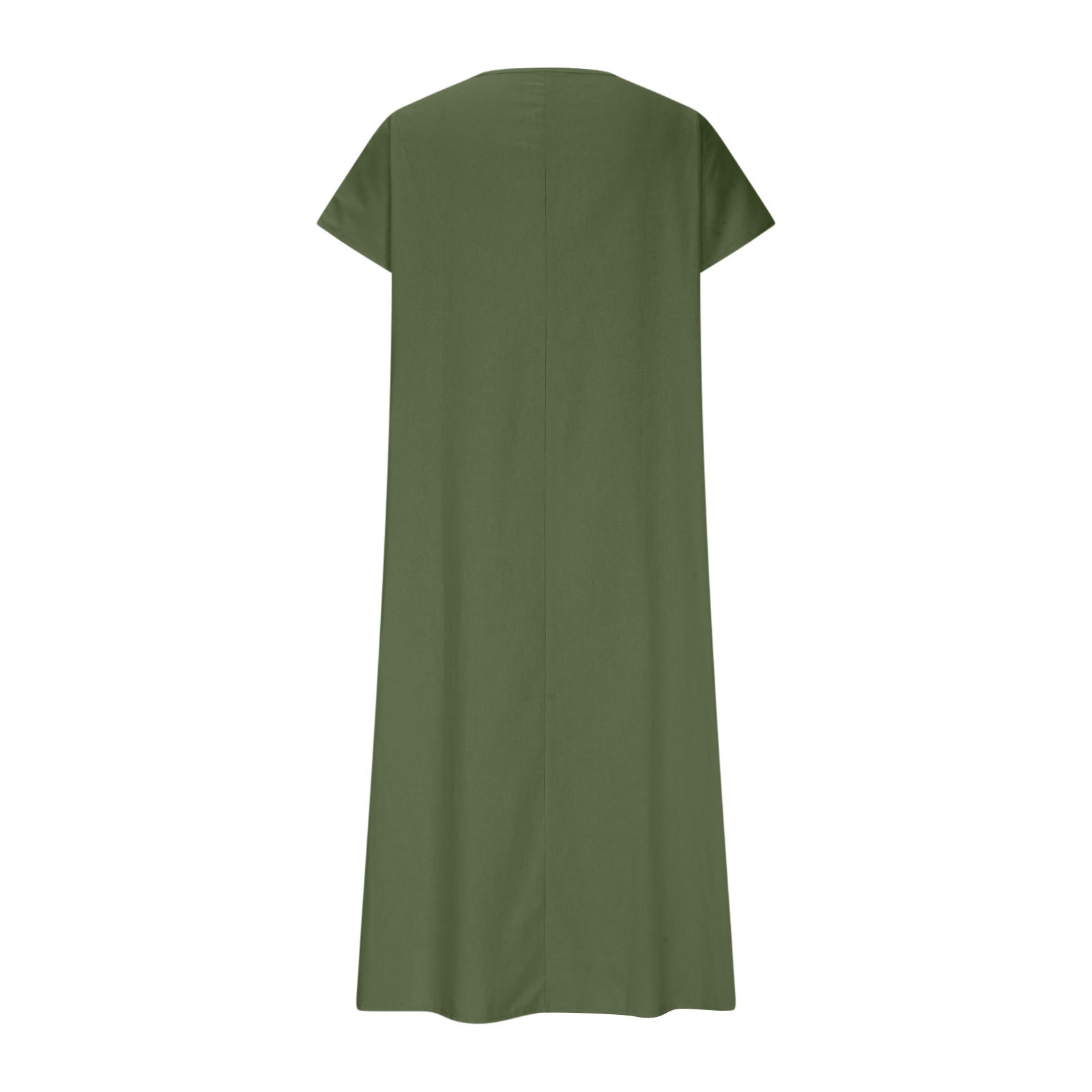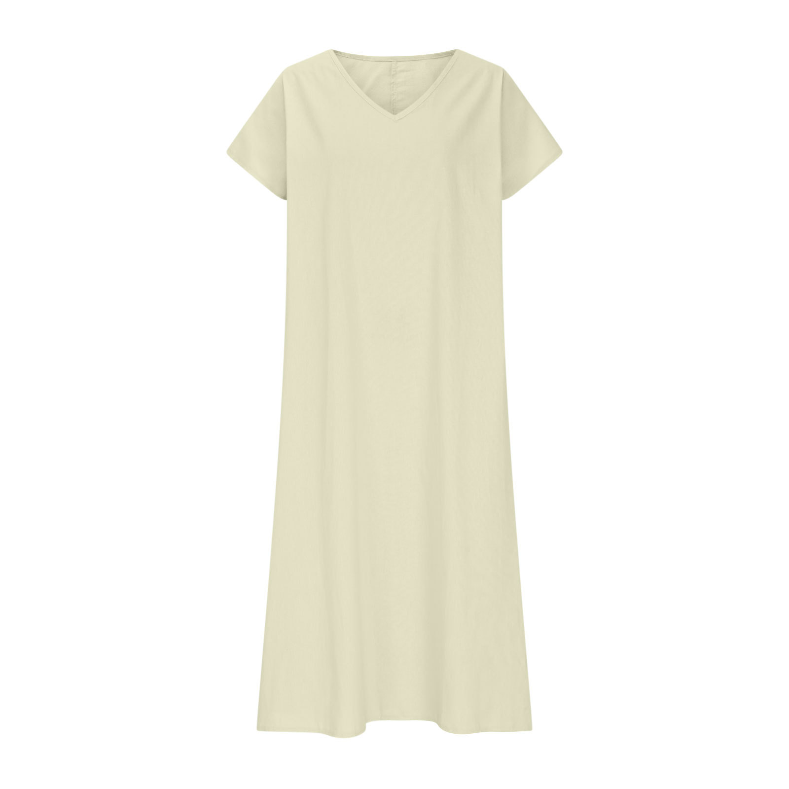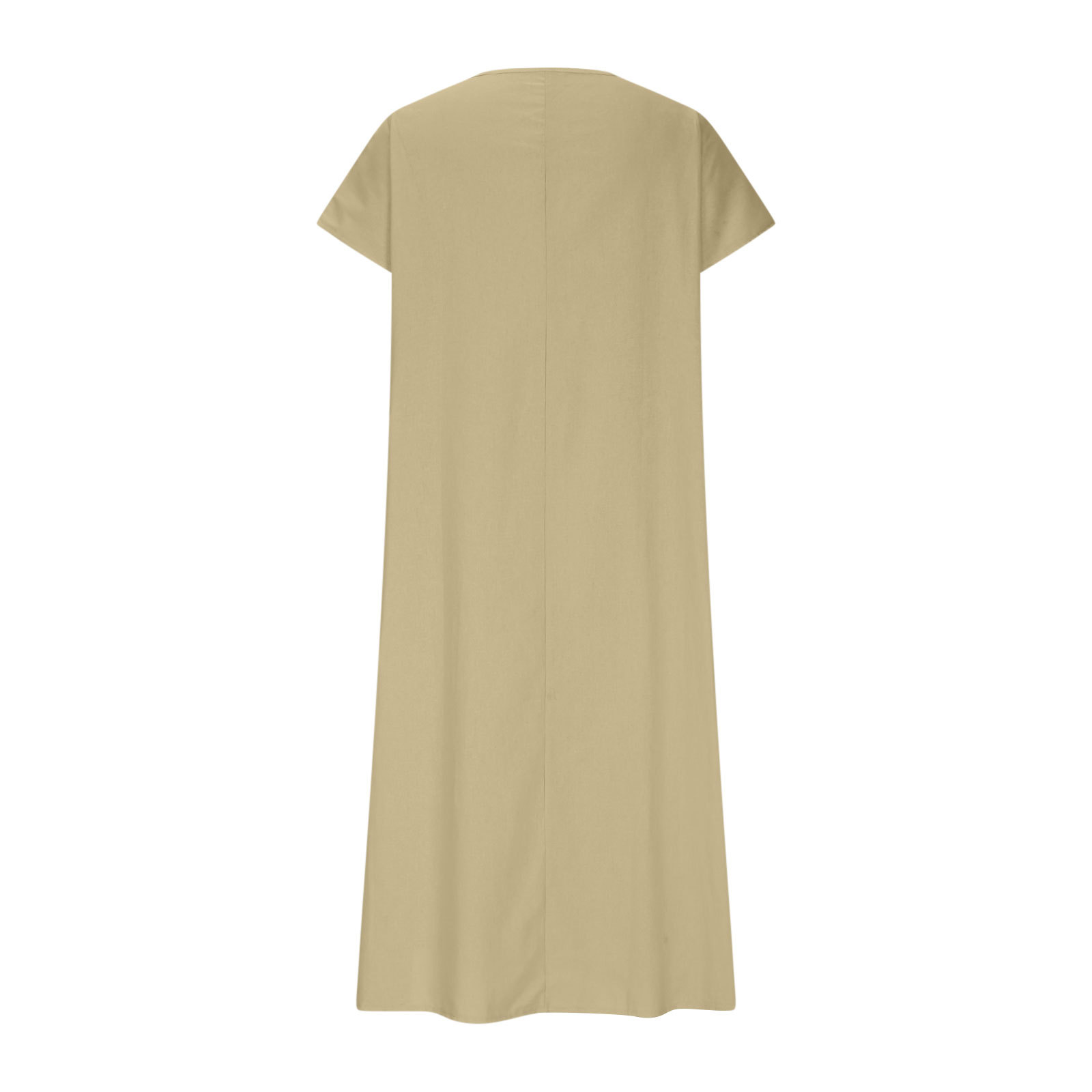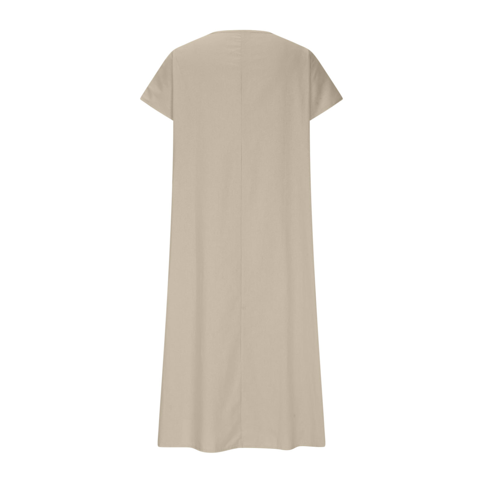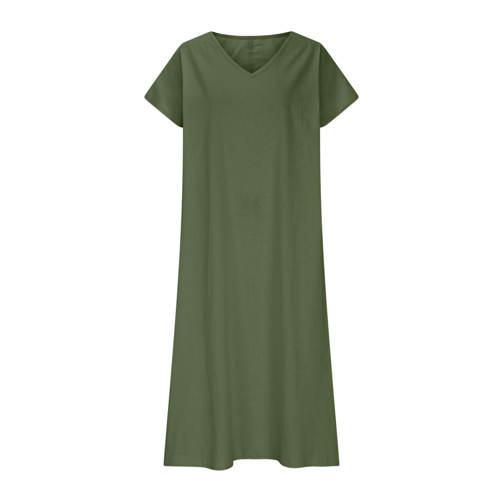 2025 봄/여름 크로스보더 아마존 독립 사이트 면/린넨 V넥 반팔 루즈핏 원피스 여성 휴가룩 원피스