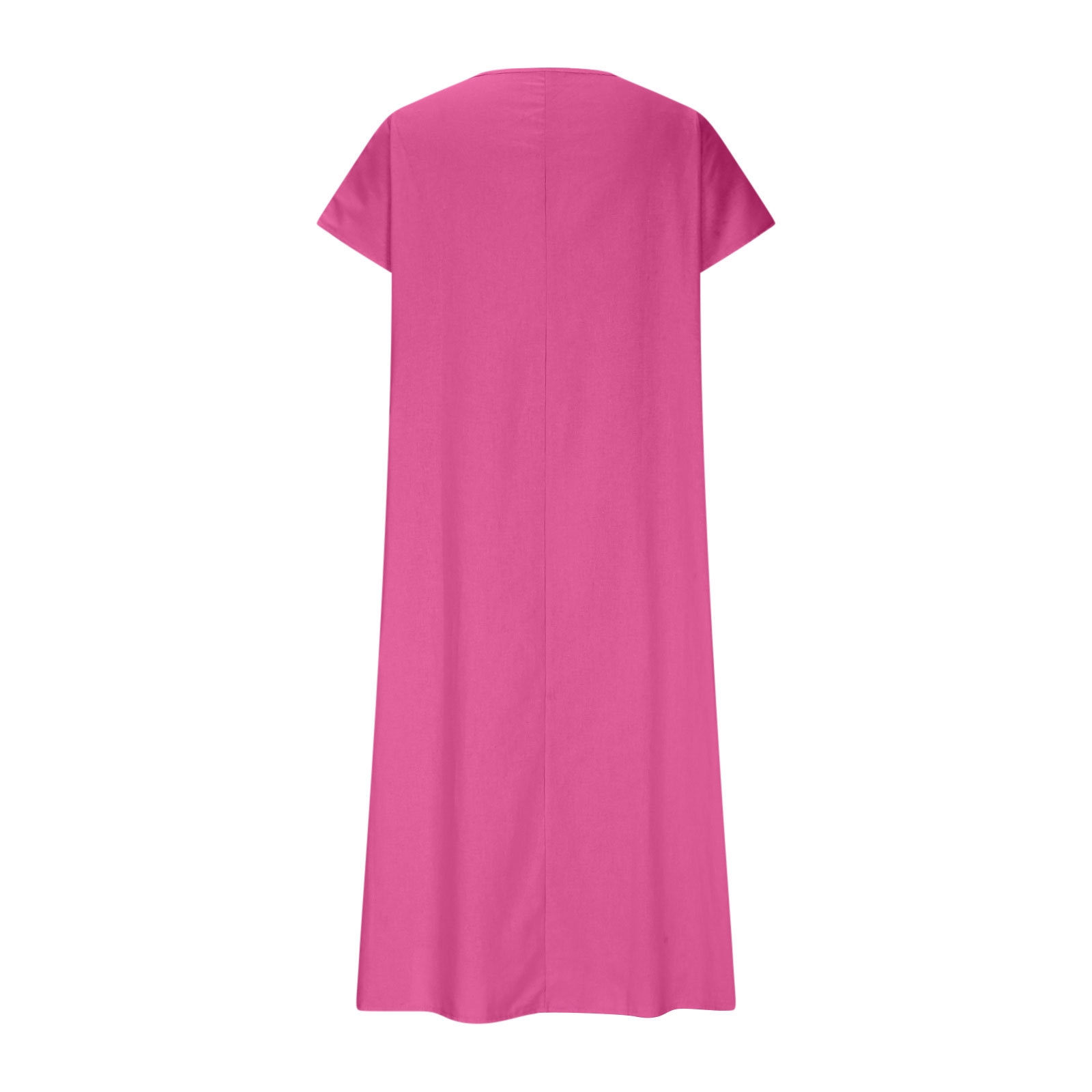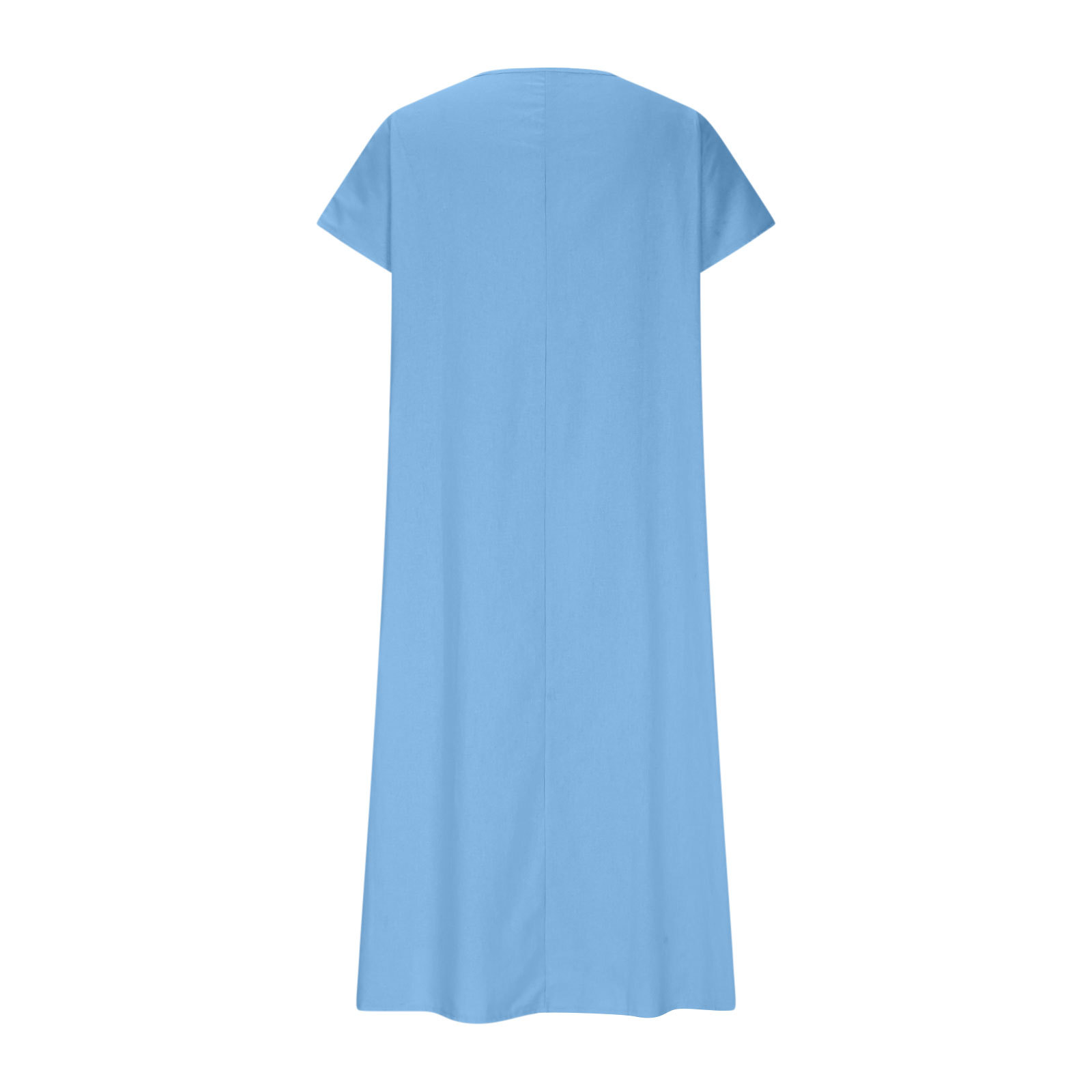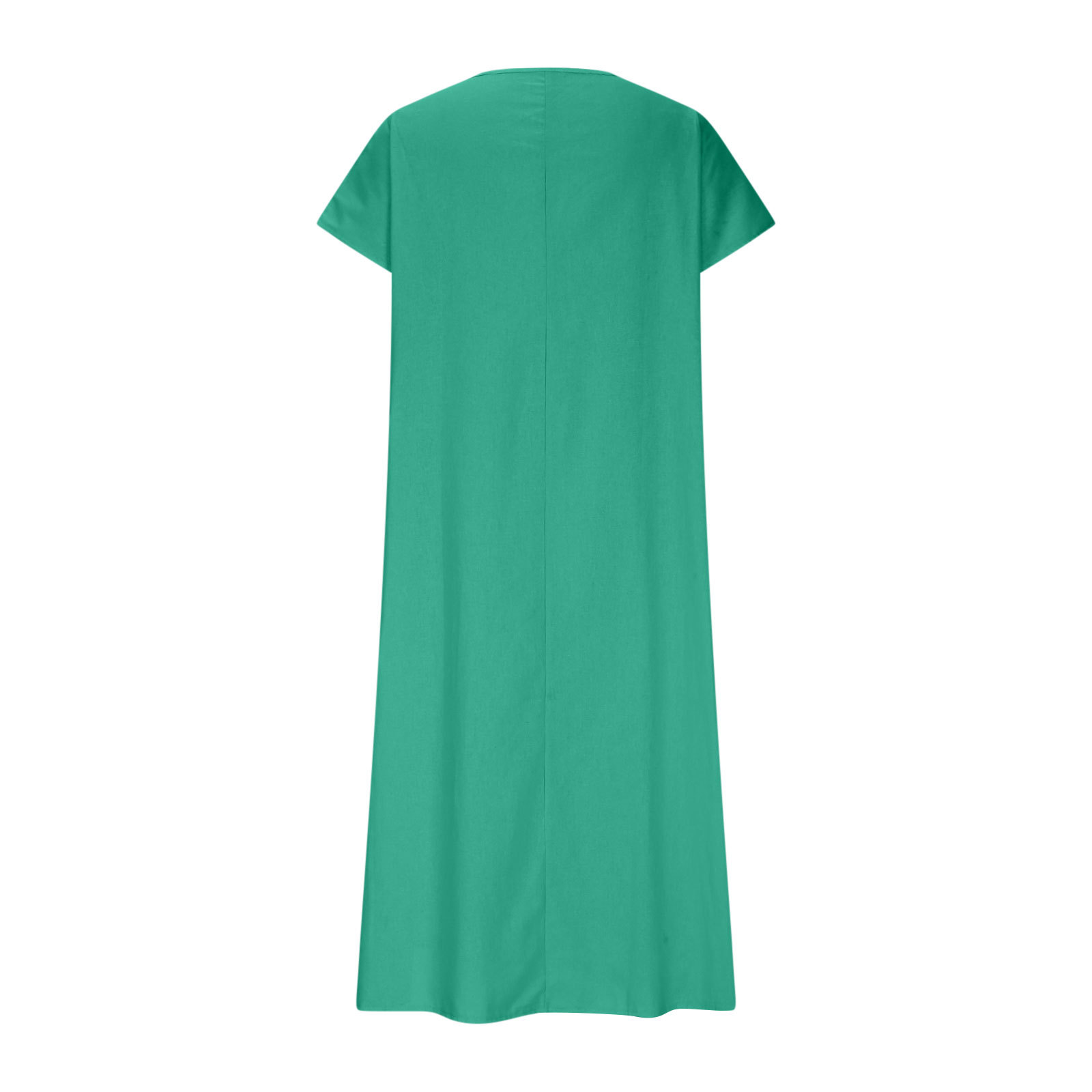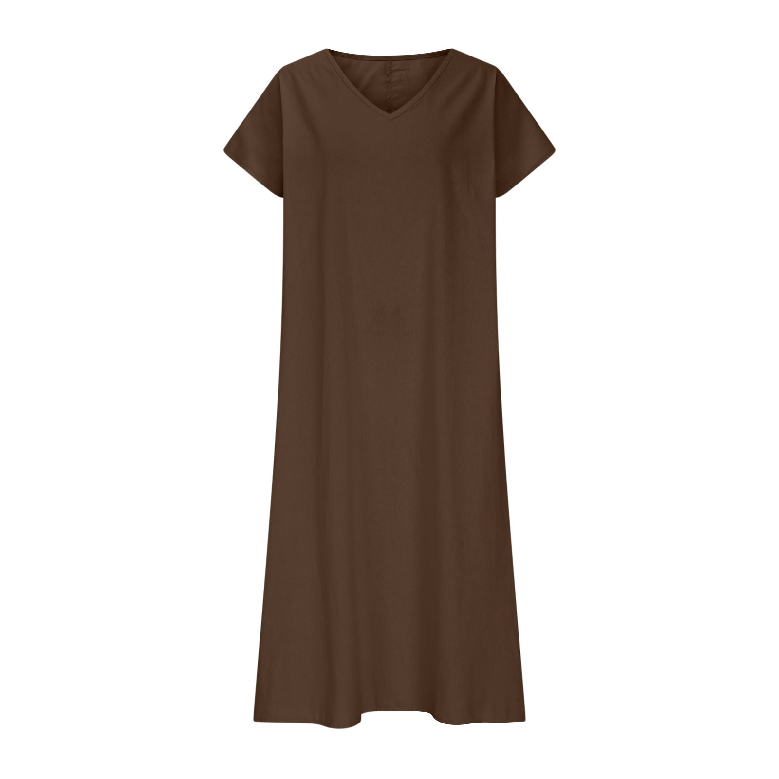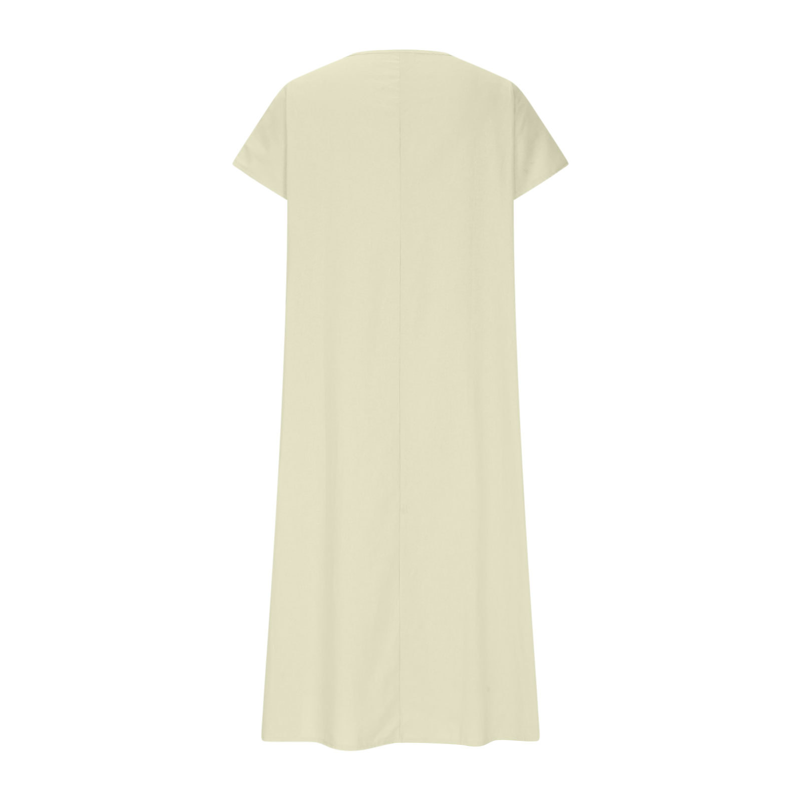 2025 봄/여름 크로스보더 아마존 독립 사이트 면/린넨 V넥 반팔 루즈핏 원피스 여성 휴가룩 원피스