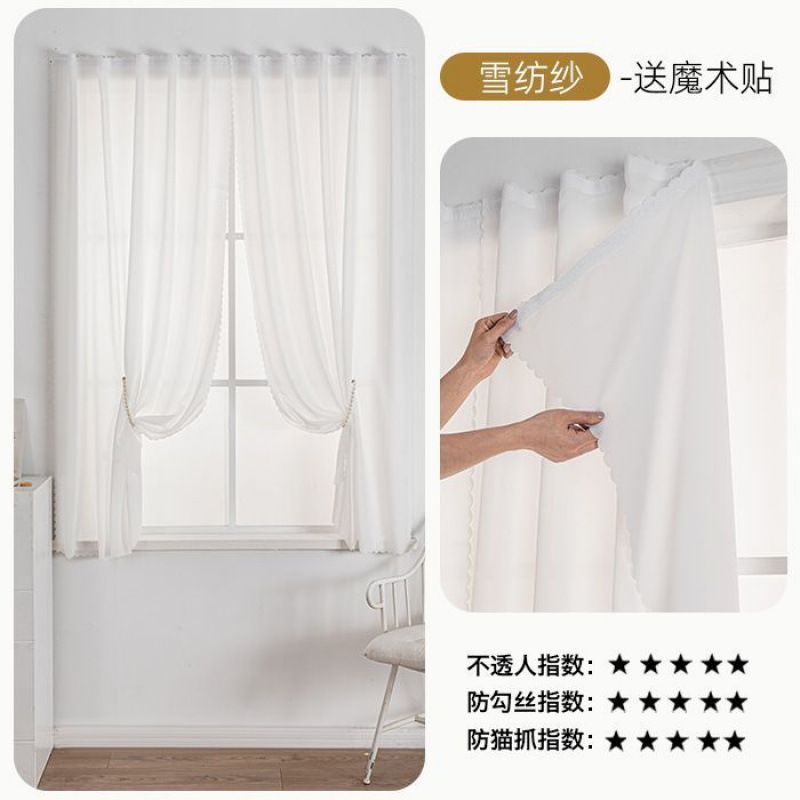 매직 테이프 커튼은 펀치 없이 설치되어 투명하고 불투명한 흰색 거즈 침실 발코니 거실 자체 접착식 간단한 거즈 커튼입니다.