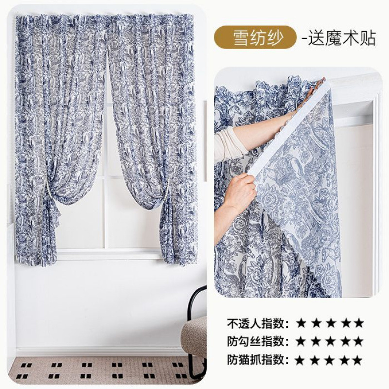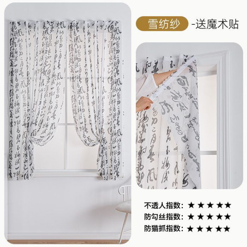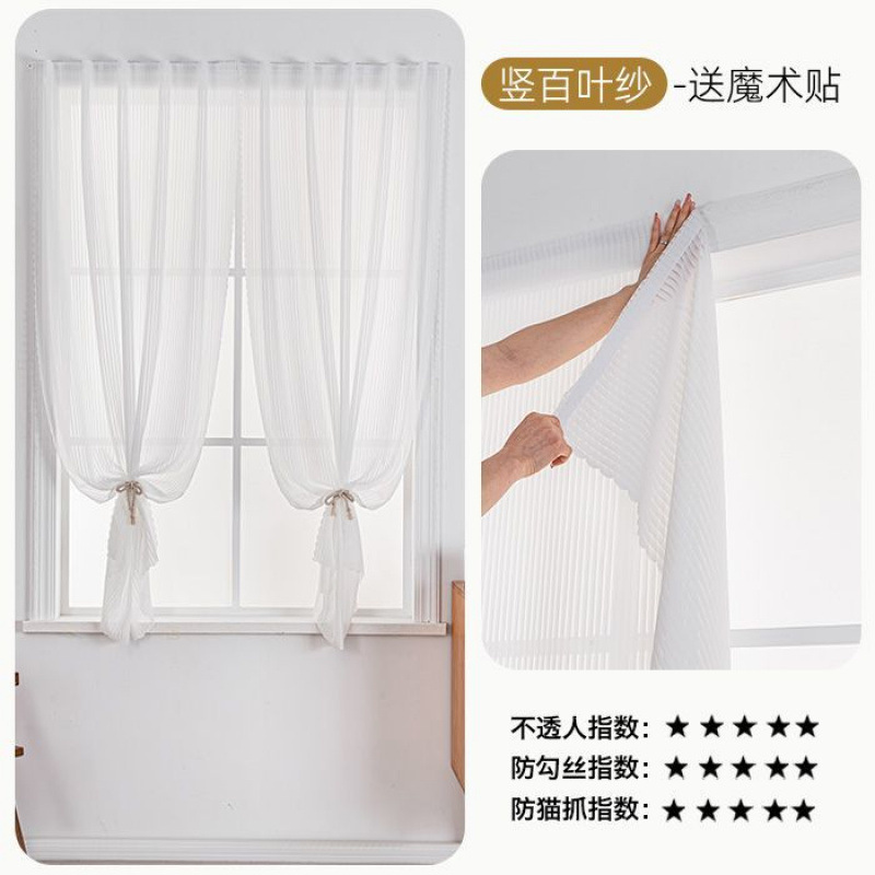 매직 테이프 커튼은 펀치 없이 설치되어 투명하고 불투명한 흰색 거즈 침실 발코니 거실 자체 접착식 간단한 거즈 커튼입니다.스토어 가기
