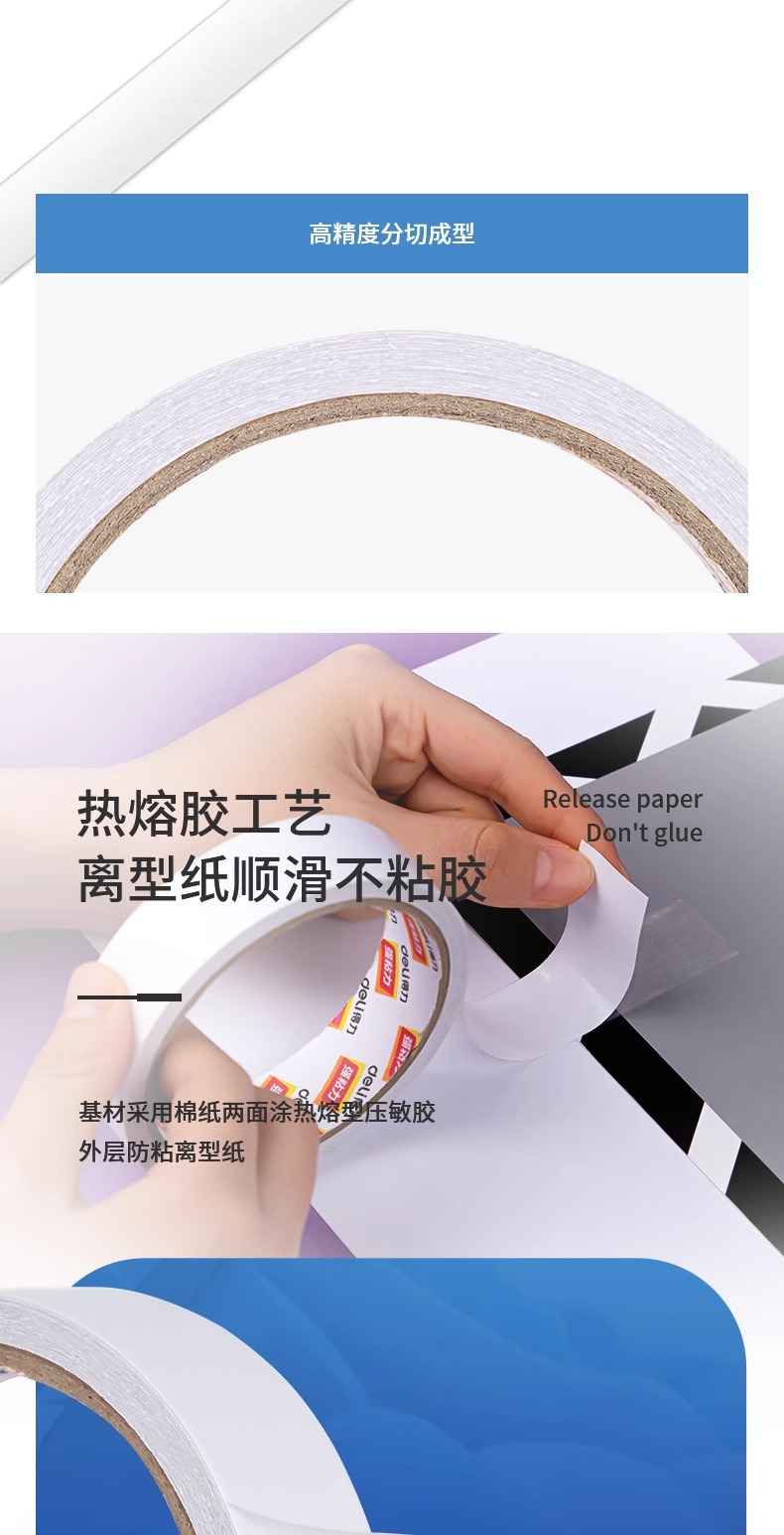 델리 양면 테이프, 고점도, 흔적 없이 강력 고정, 어린이 수제 양면 테이프, 면 종이, 손으로 찢을 수 있는 초박형 투명