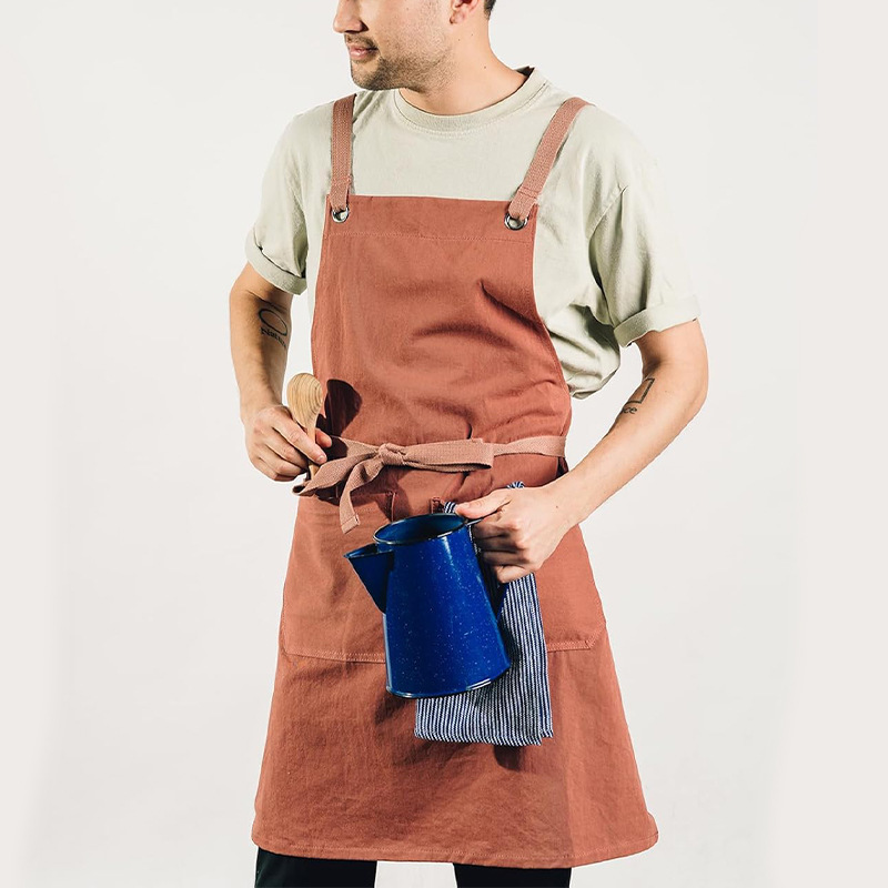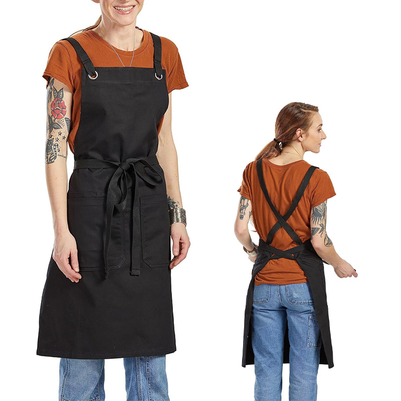 국경 간 무역용 캔버스 앞치마 맞춤형 로고 크로스 스트랩 가정용 원예 식당 커피숍 주방 앞치마스토어 가기