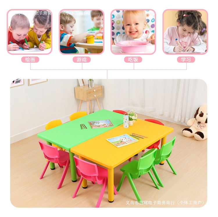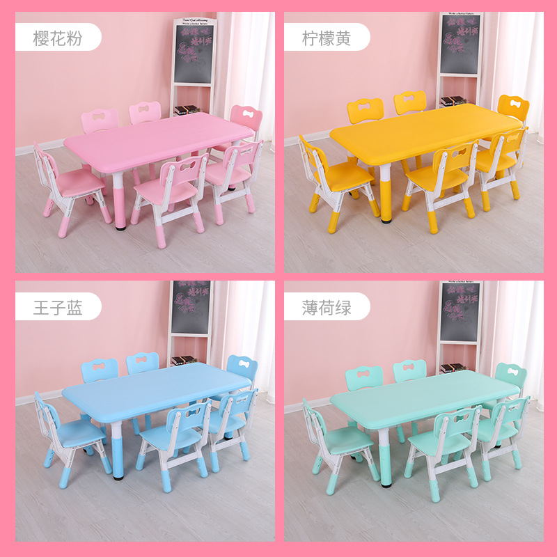 유치원 테이블과 의자 어린이 테이블 홈 데스크 아기 플라스틱 테이블 리프팅 작은 긴 사각형 테이블 게임 테이블 및 의자 세트