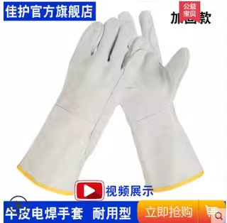 Jiahu 소가죽 용접 장갑, 용접, 두꺼운, 고온 방지, 단열, 화상 방지, 원예, 찌르기 방지, 야외 긴 배열스토어 가기