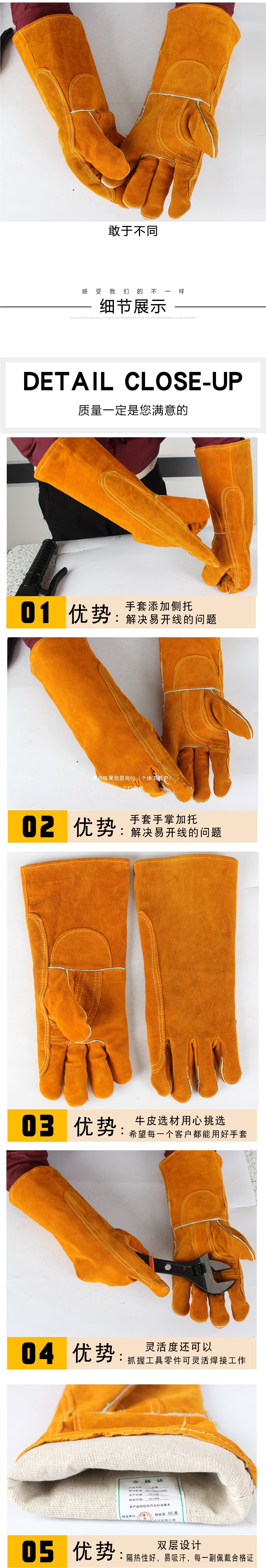 Jiahu 소가죽 용접 장갑, 용접, 두꺼운, 고온 방지, 단열, 화상 방지, 원예, 찌르기 방지, 야외 긴 배열