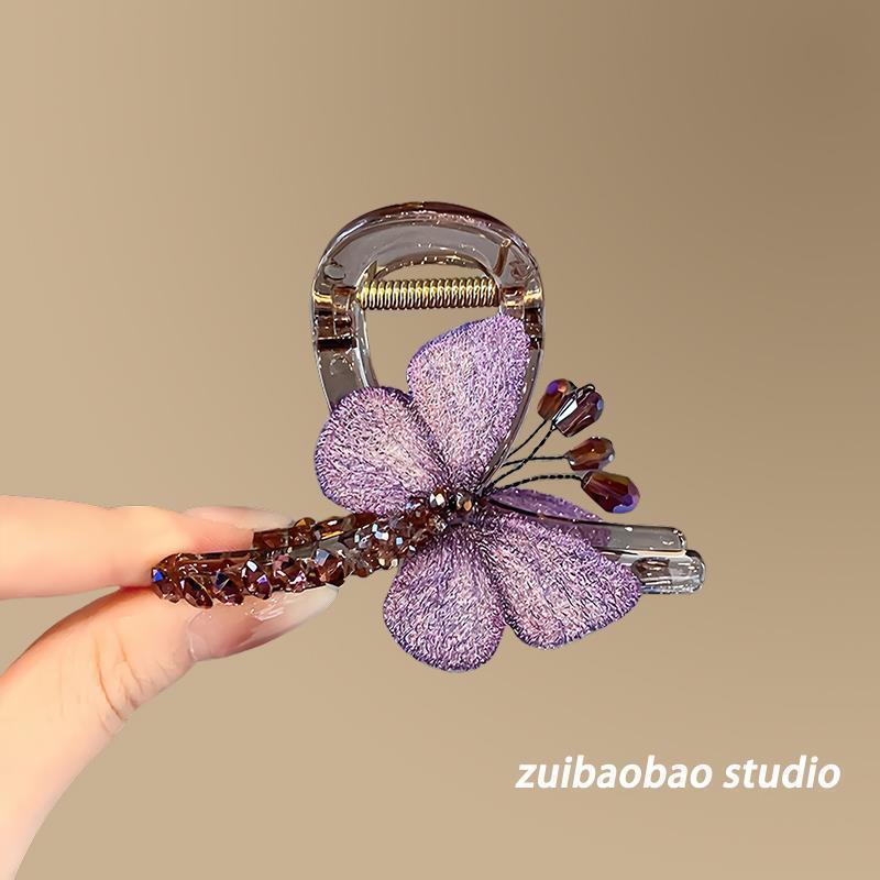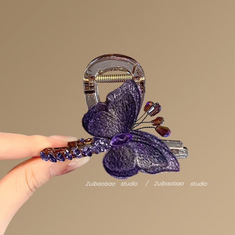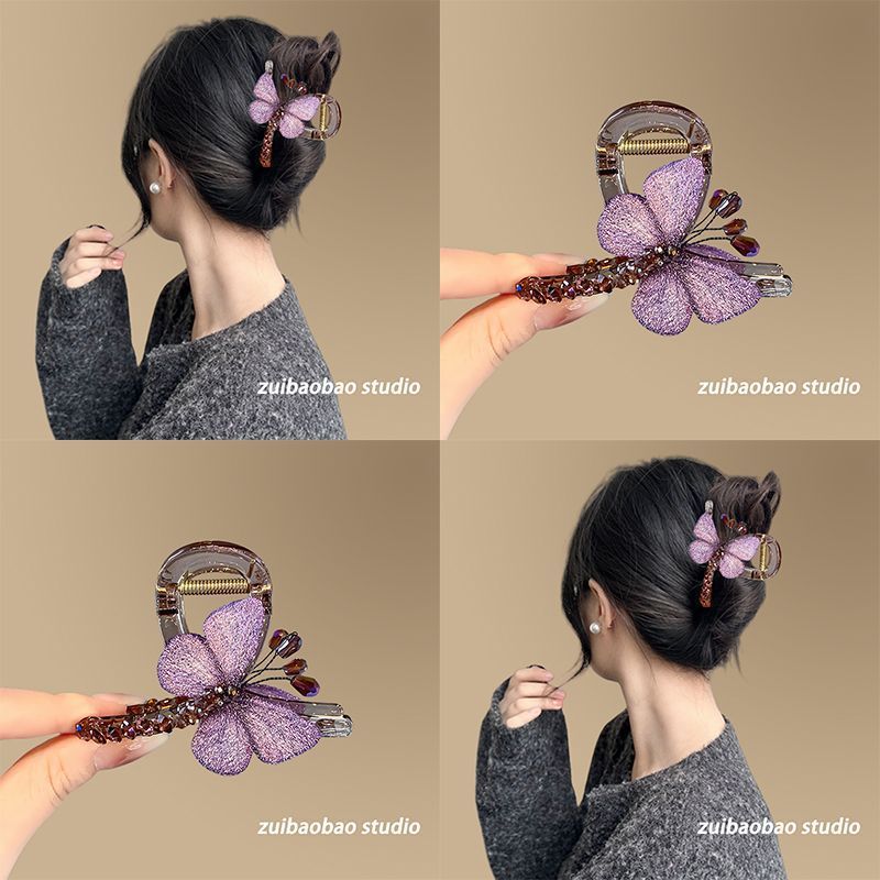 떨어지는 나비 ~ 기질 레트로 스타일 자수 나비 잡아 클립 여성 중간 머리 반 머리 상어 클립 헤어 액세서리