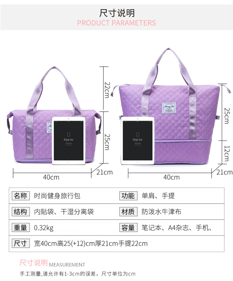 여행용 가방 여성 수납 가방 건습 분리 스포츠 피트니스 수영 가방 건습 분리 디자인