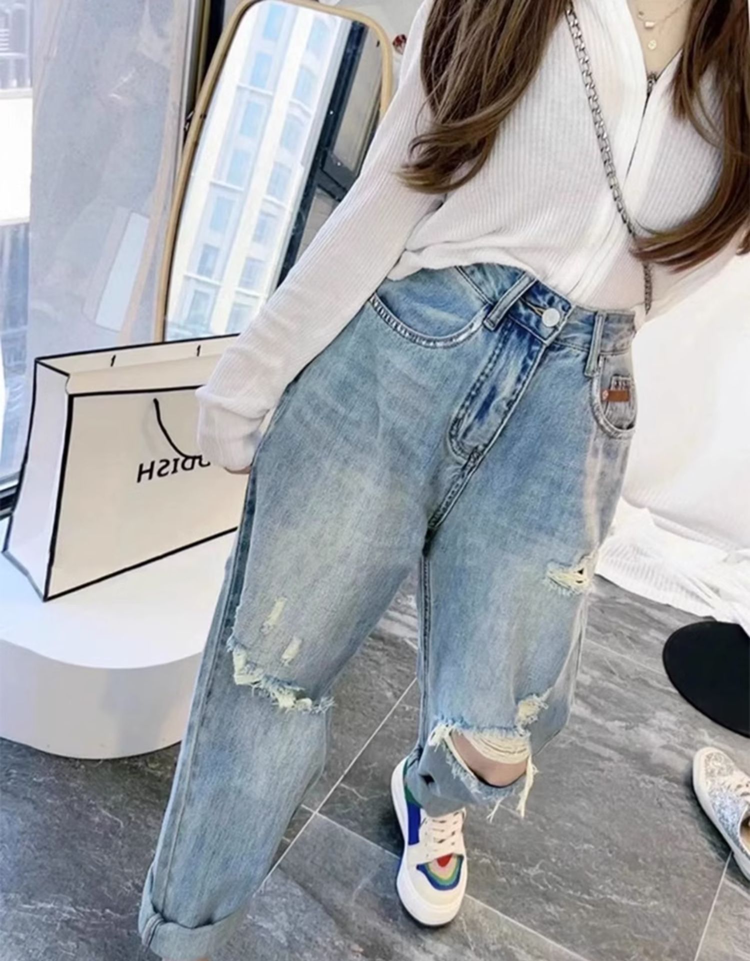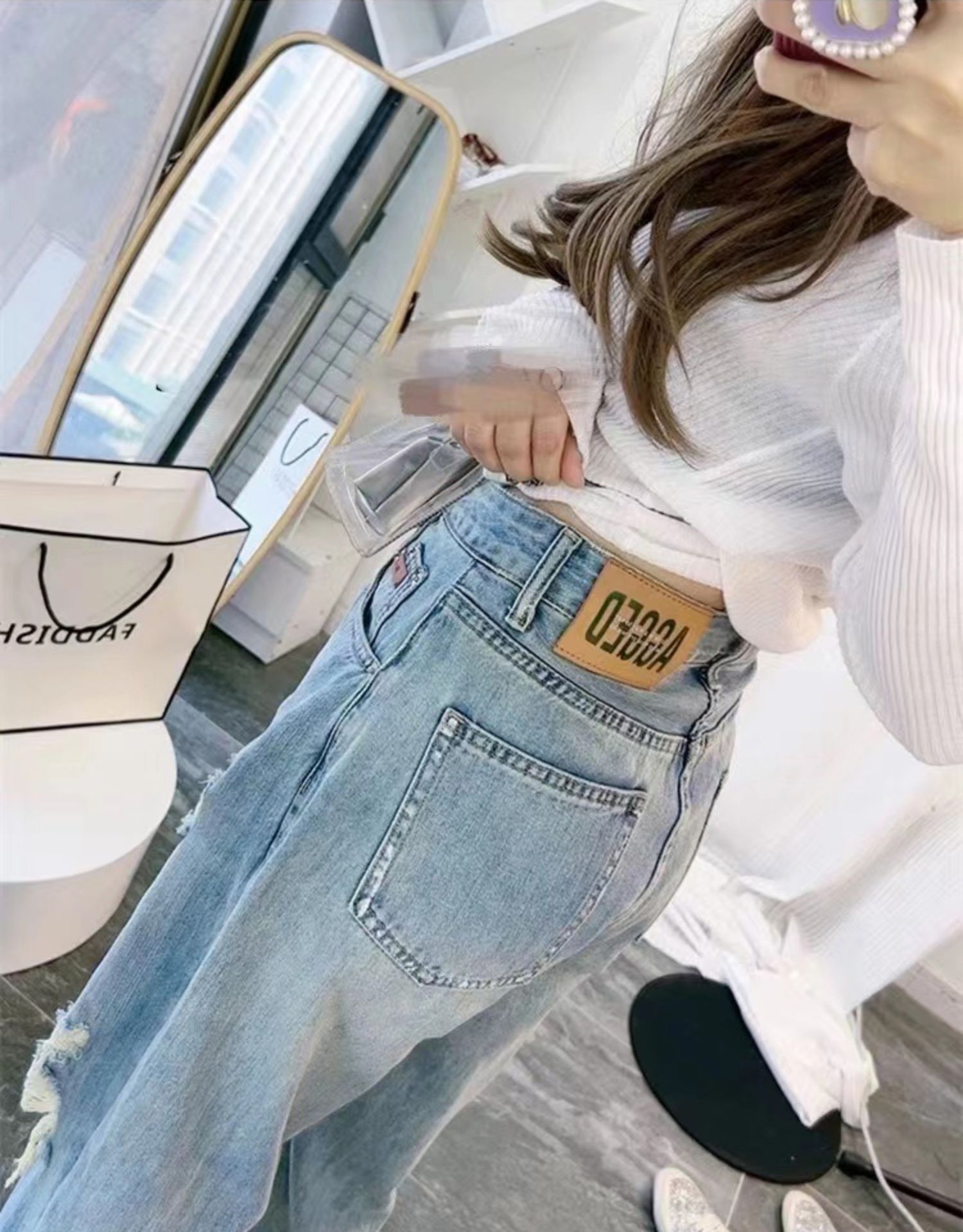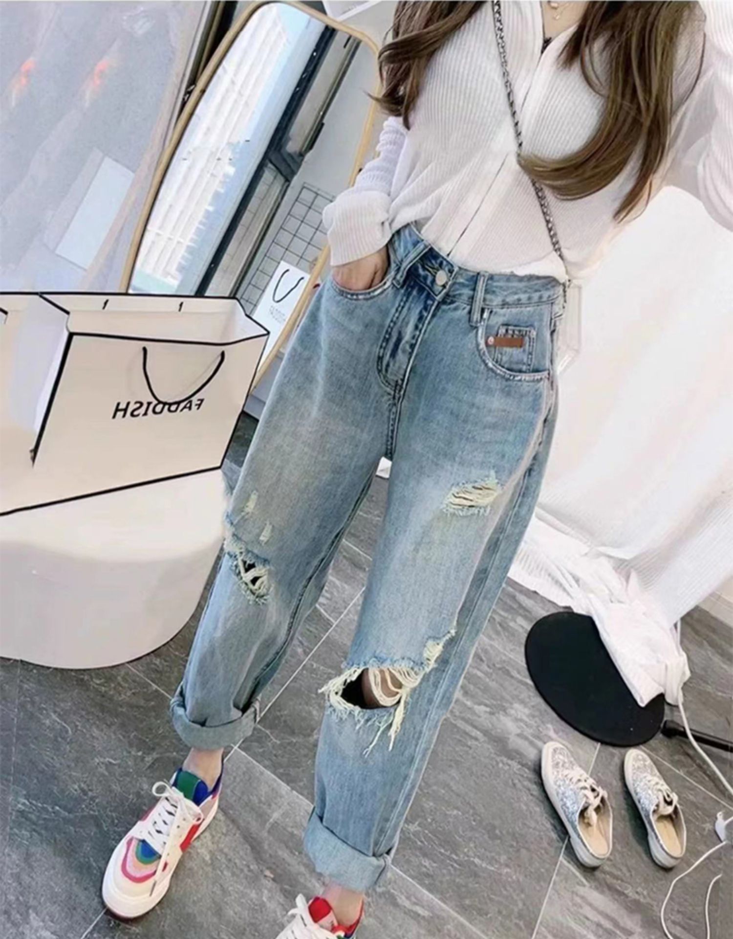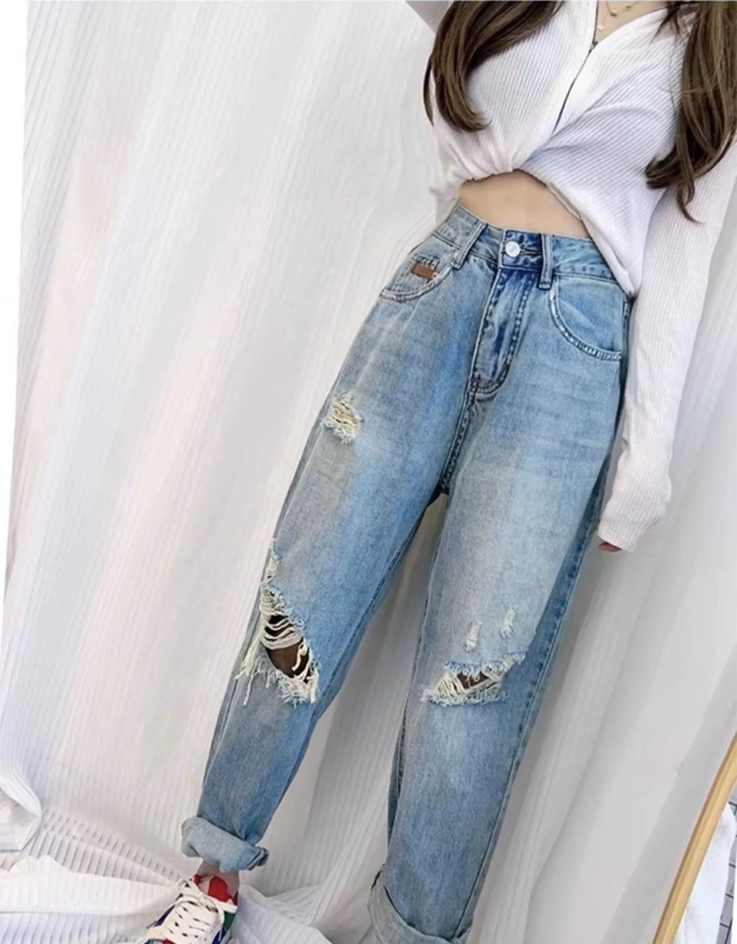 플러스 사이즈 스트레이트 청바지 여성용 2025 년 새 봄과 가을 통통녀 느슨한 높은 허리 슬리밍 아빠 하렘 바지스토어 가기