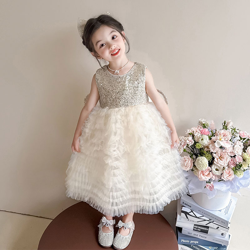 봄과 여름 2025 새로운 원피스 어린이 메쉬 원사 케이크 스커트 민소매 생일 원피스 어린이 날 공연 원피스스토어 가기