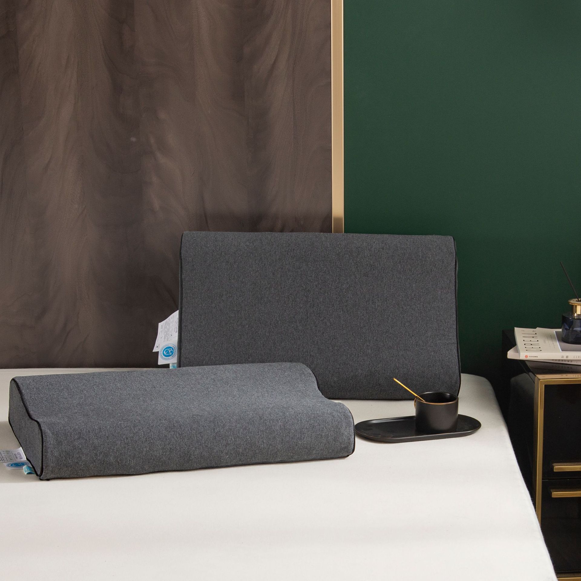 4D 공기 섬유 베개 일본 검은 기술 통기성 자궁 경부 척추 보호 통기성 발한 단일 학생 편안한 메모리 베개