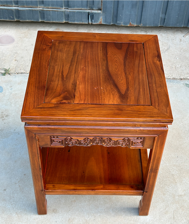새로운 순수한 단단한 나무 작은 사각형 테이블 커피 테이블 새로운 중국 소파 사이드 테이블 실내 거실 꽃 랙 오래 된 느릅 나무 광장 작은