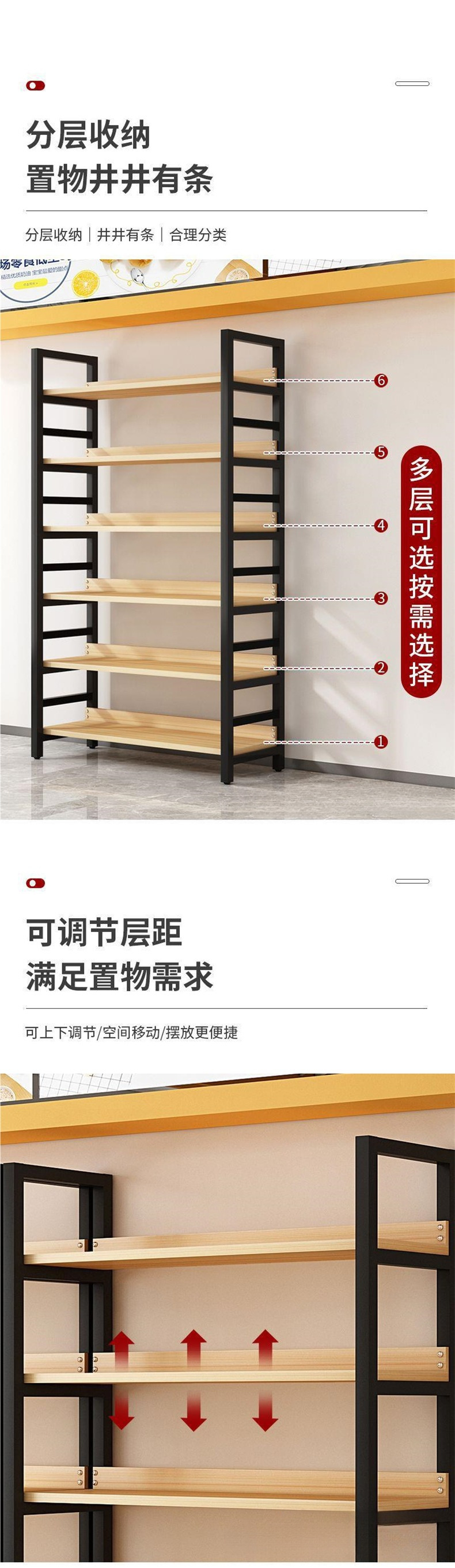 선반 다층 디스플레이 랙 스틸 목재 스토리지 랙 특수 통관 슈퍼마켓 스토리지 디스플레이 랙 조정 가능한 책장스토어 가기