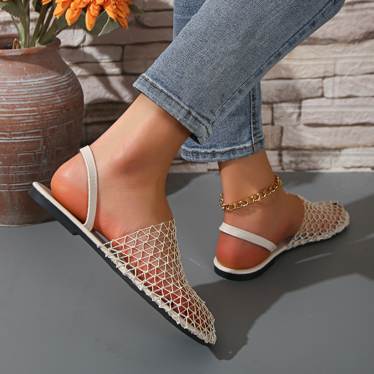 유럽과 미국의 대외 무역 중공 메쉬 표면 Baotou 플랫 슬리퍼 여성 국경 간 착용 플러스 사이즈 라운드 헤드 비치 샌들