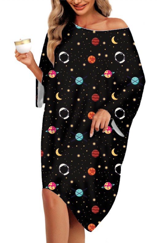 2025 아마존 크로스 국경 플러스 사이즈 여성 나이트 가운 홈 착용 티셔츠 짧은 소매 인쇄 파자마 잠옷 포켓스토어 가기