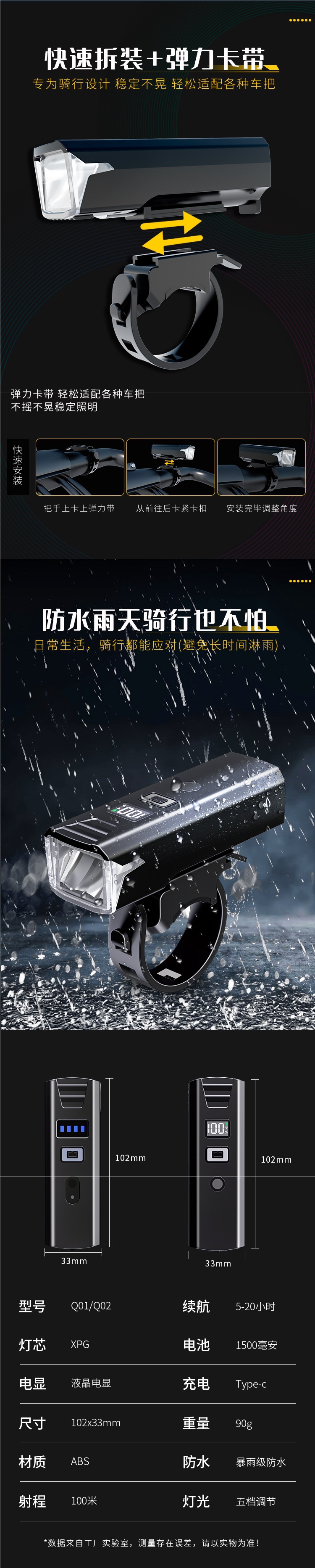 • 업그레이드된 600루멘 헤드라이트 + Q10 스마트 미등, 4단 전자 디스플레이, 광 센서, 방수 및 충격 방지, 스마트 고속 충전