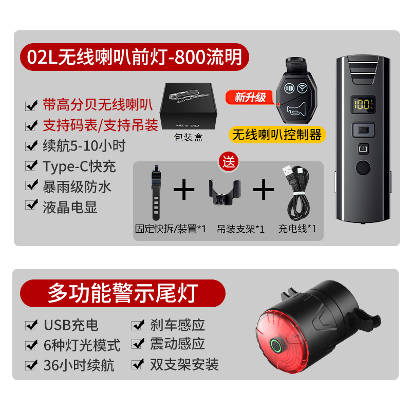 • 패키지가 더 유리합니다: MQ02 800루멘 전면 조명 + Q11S 브레이크 센서 미등(이중 브래킷)