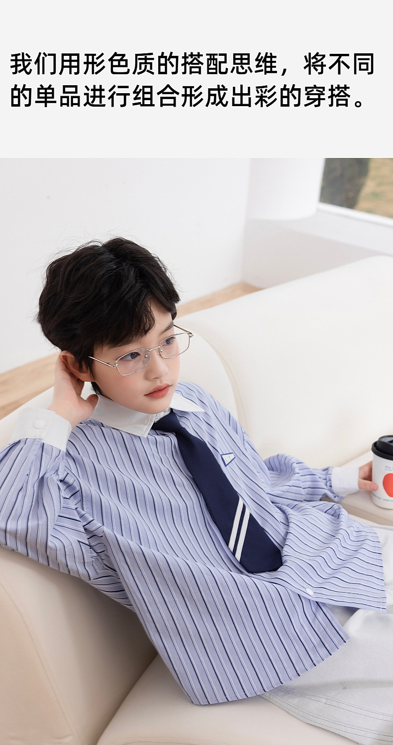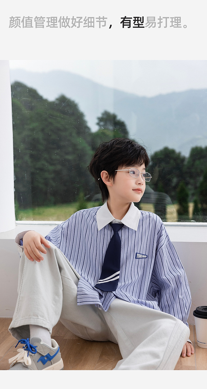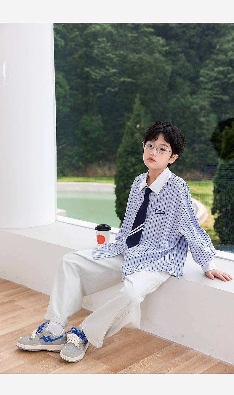 2025년 가을 신상 남아 스트라이프 셔츠 (넥타이 포함) 아동 긴팔 셔츠 봄 상의 제조업체 도매스토어 가기