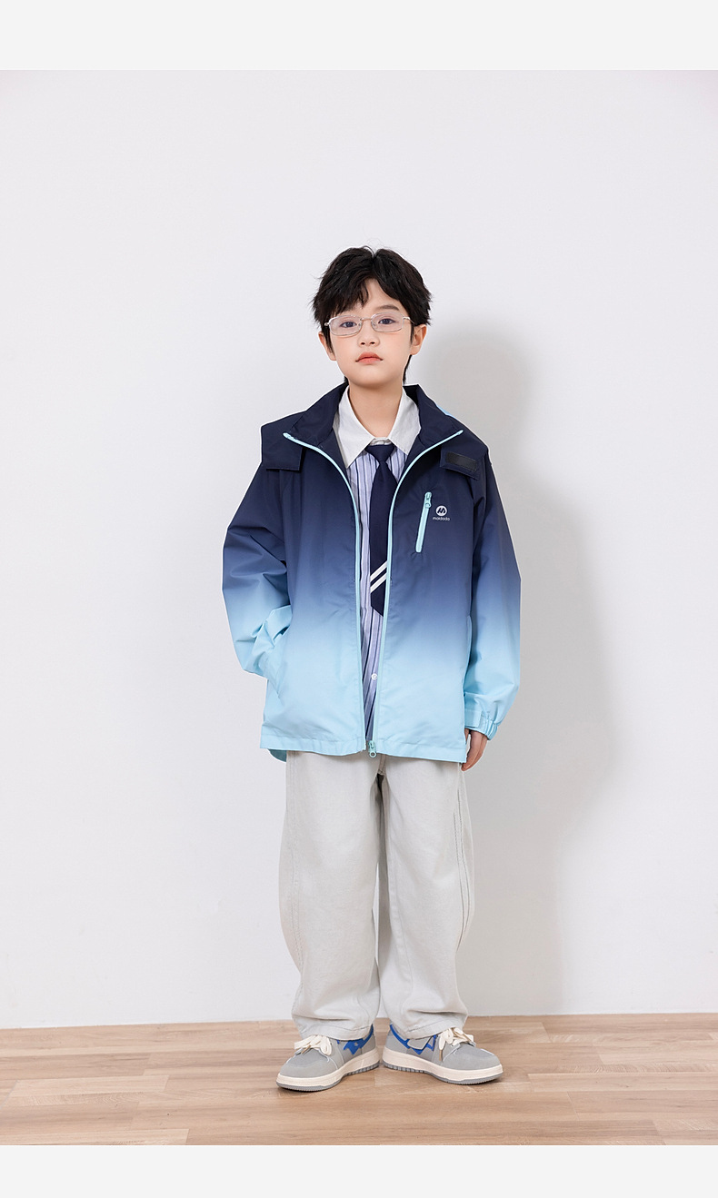 可溯源新国标90白鸭绒渐变色防水儿童羽绒服男童高充绒外套面包服