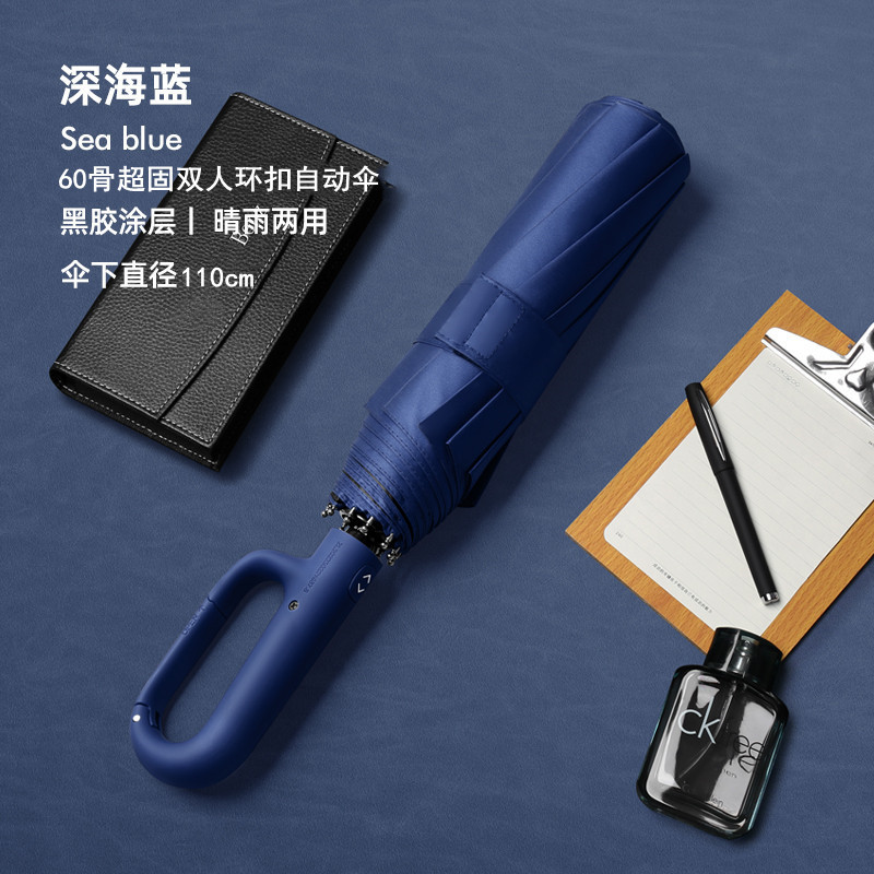 • 크리에이티브 버클] 역방향 비습식 확대 비닐 더블 [폭력 방지 우산 갈비뼈 60개] 딥 씨 블루