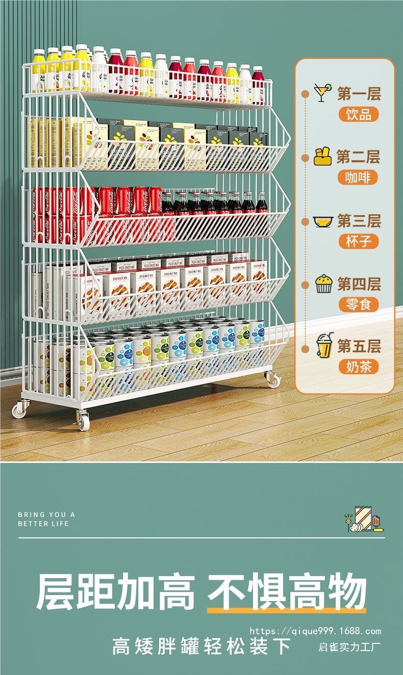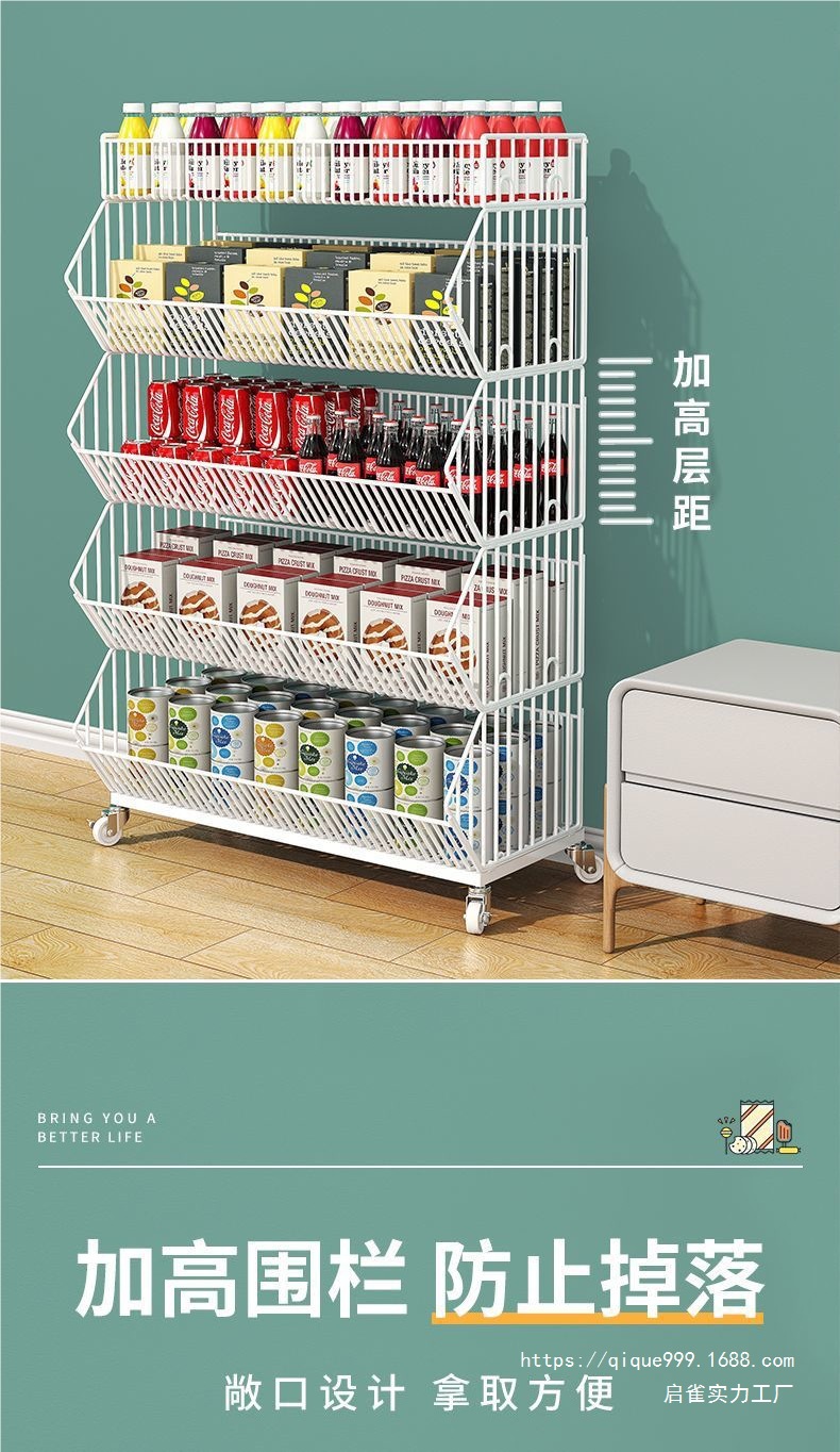 슈퍼마켓 계층화 된 선반 스낵 스토리지 디스플레이 랙 주방 다기능 스토리지 랙 가정용 바닥 모바일 책장스토어 가기