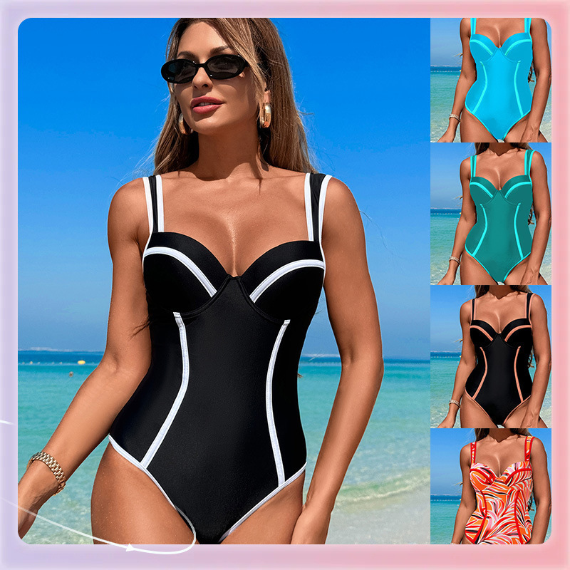 새로운 수영복 여성 원피스 흑백 하이 웨이스트 섹시한 비키니 배꼽으로 덮인 슬림 보수적 인 해변 수영복
