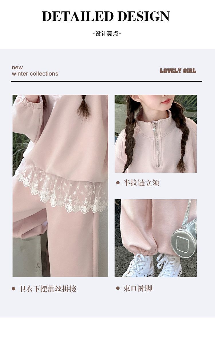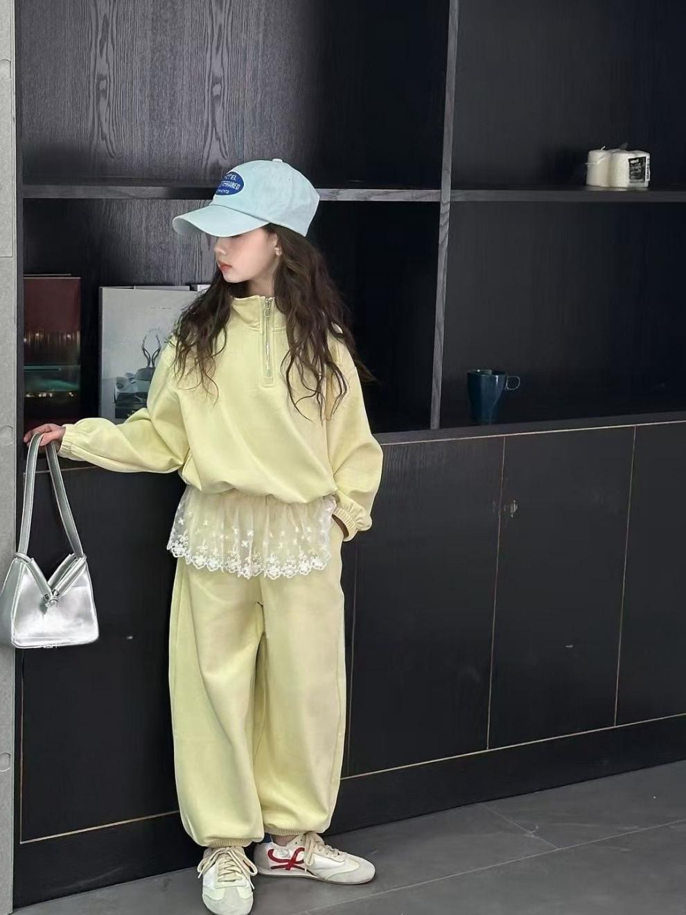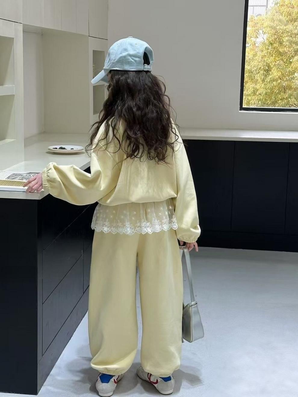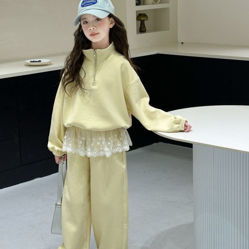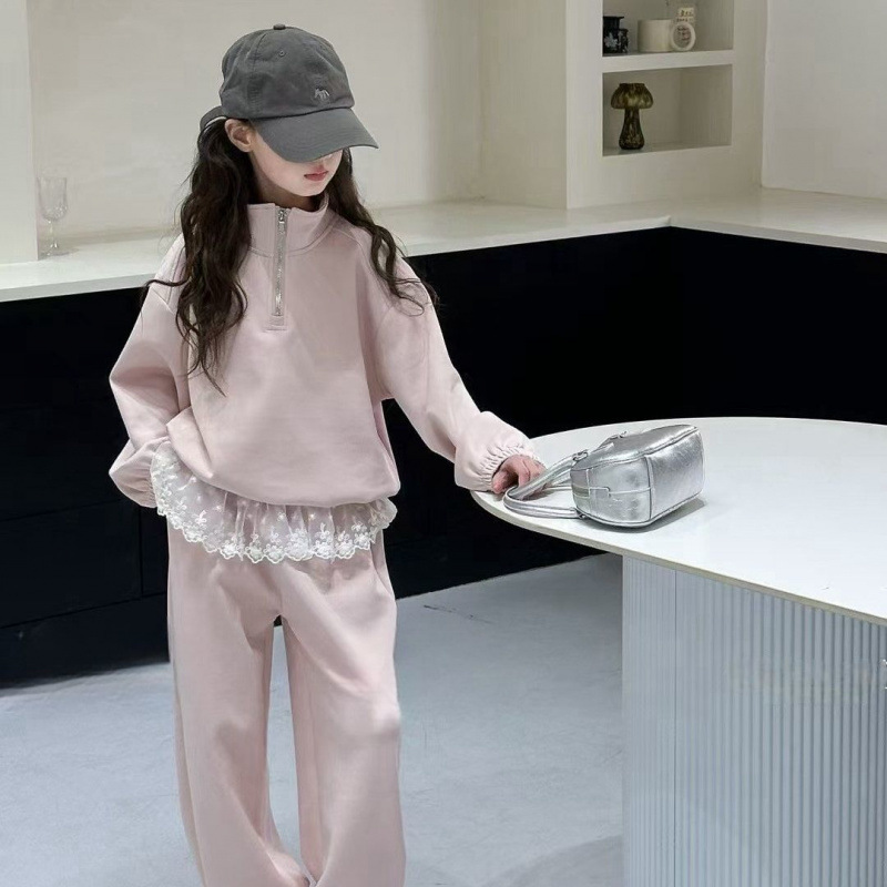 소녀의 봄과 가을 세트 2025 새로운 어린이 레이스 웨스턴 스타일 레이스 스웨트 베이비 소녀의 캐주얼 봄 투피스 세트