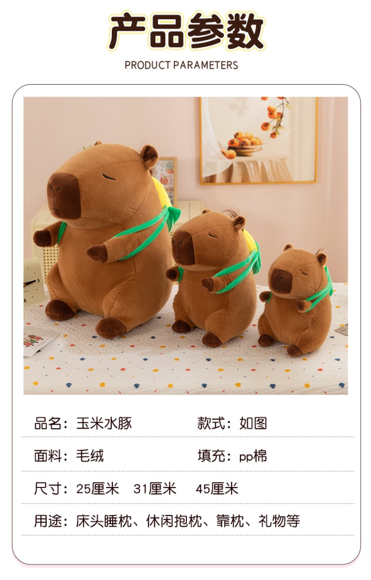 새로운 옥수수 카피바라 인형 플러시 장난감 대형 인형 카피바라 인형 어린이 생일 선물스토어 가기