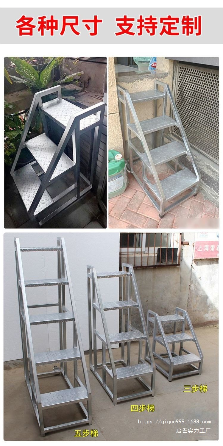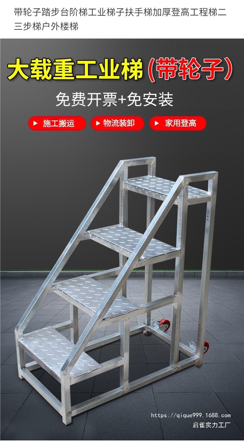 바퀴 사다리가있는 스테핑 플랫폼 산업 사다리 난간 사다리 두꺼운 등반 엔지니어링 사다리 2 ~ 3 단계 야외 계단스토어 가기