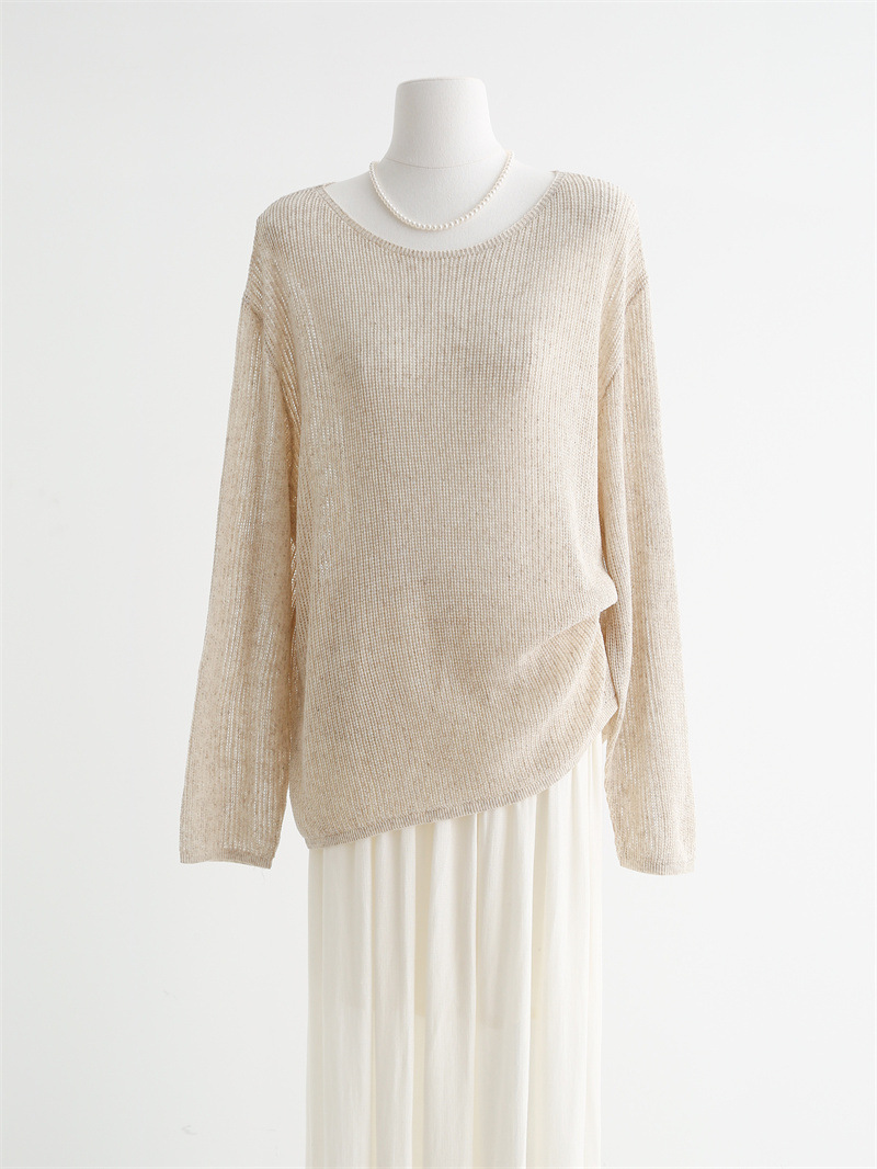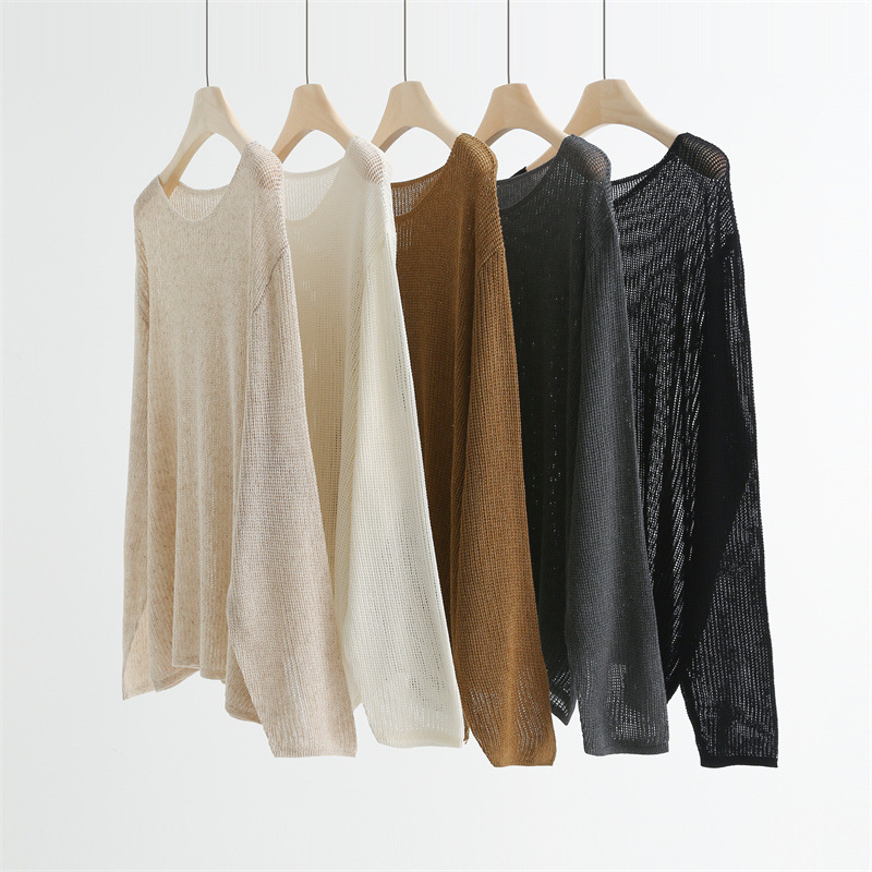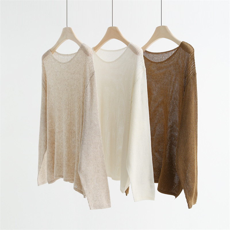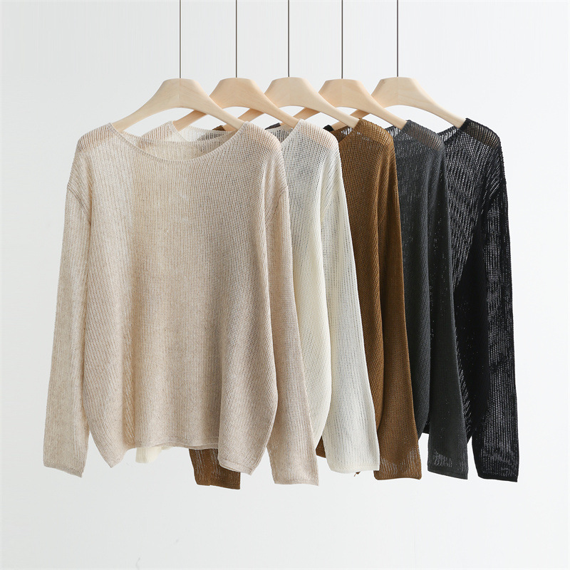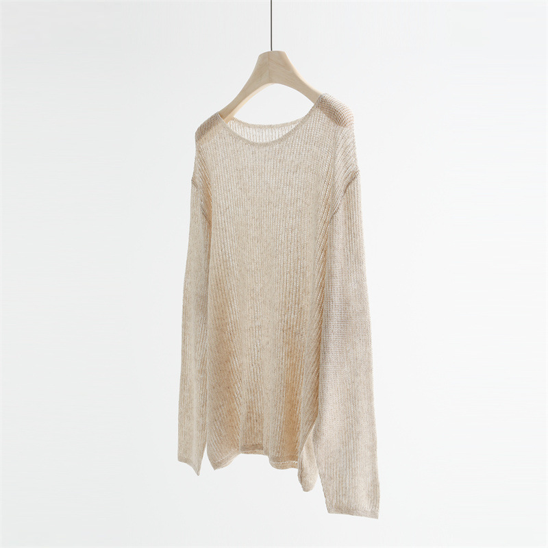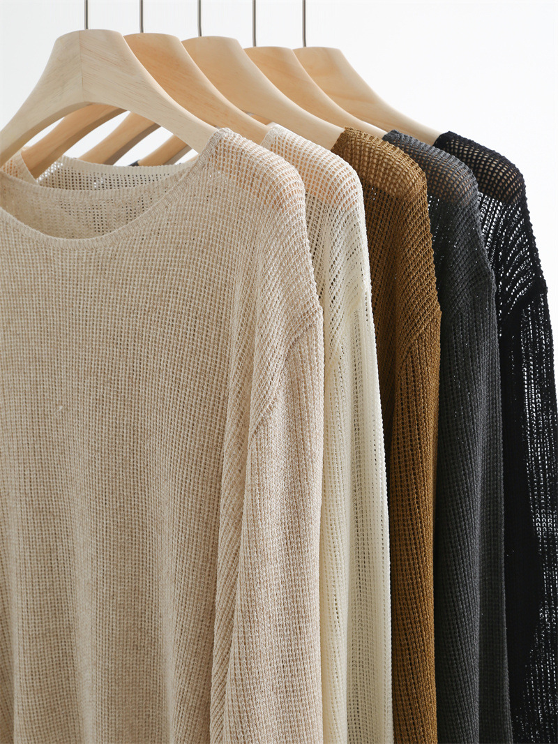 款号:QT1-95021#天丝亚麻圆领网眼罩衫